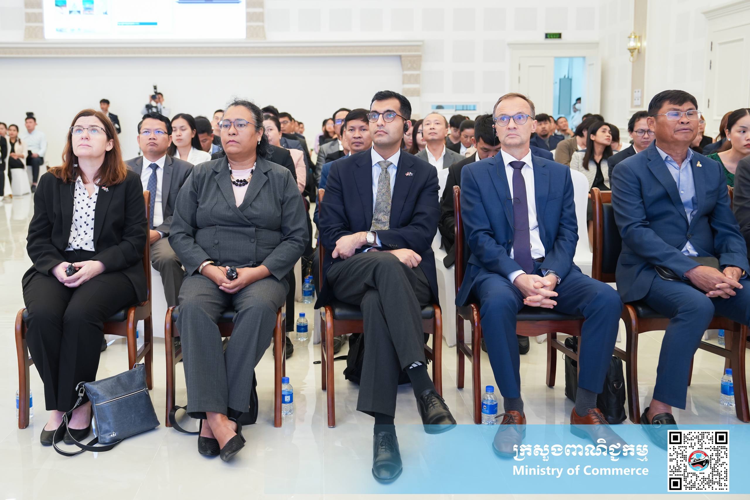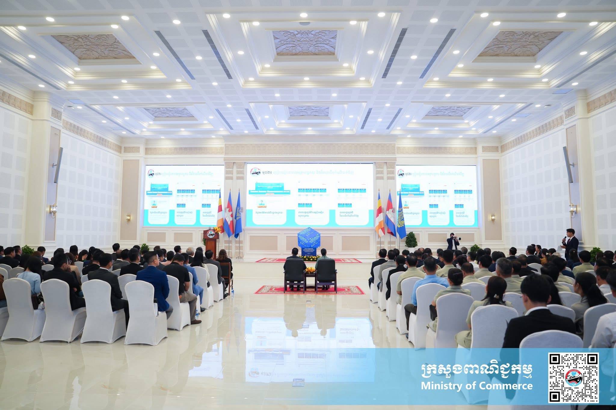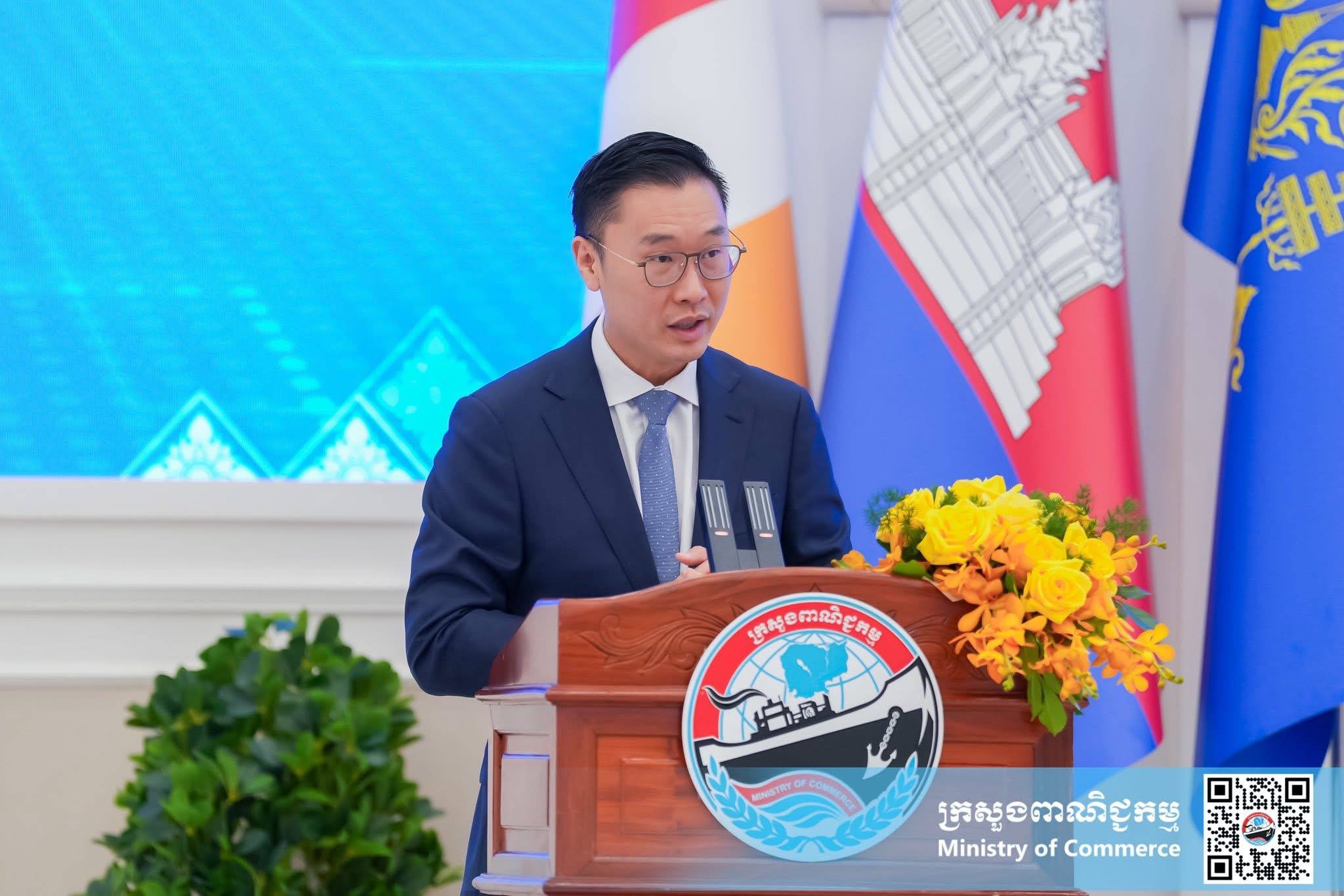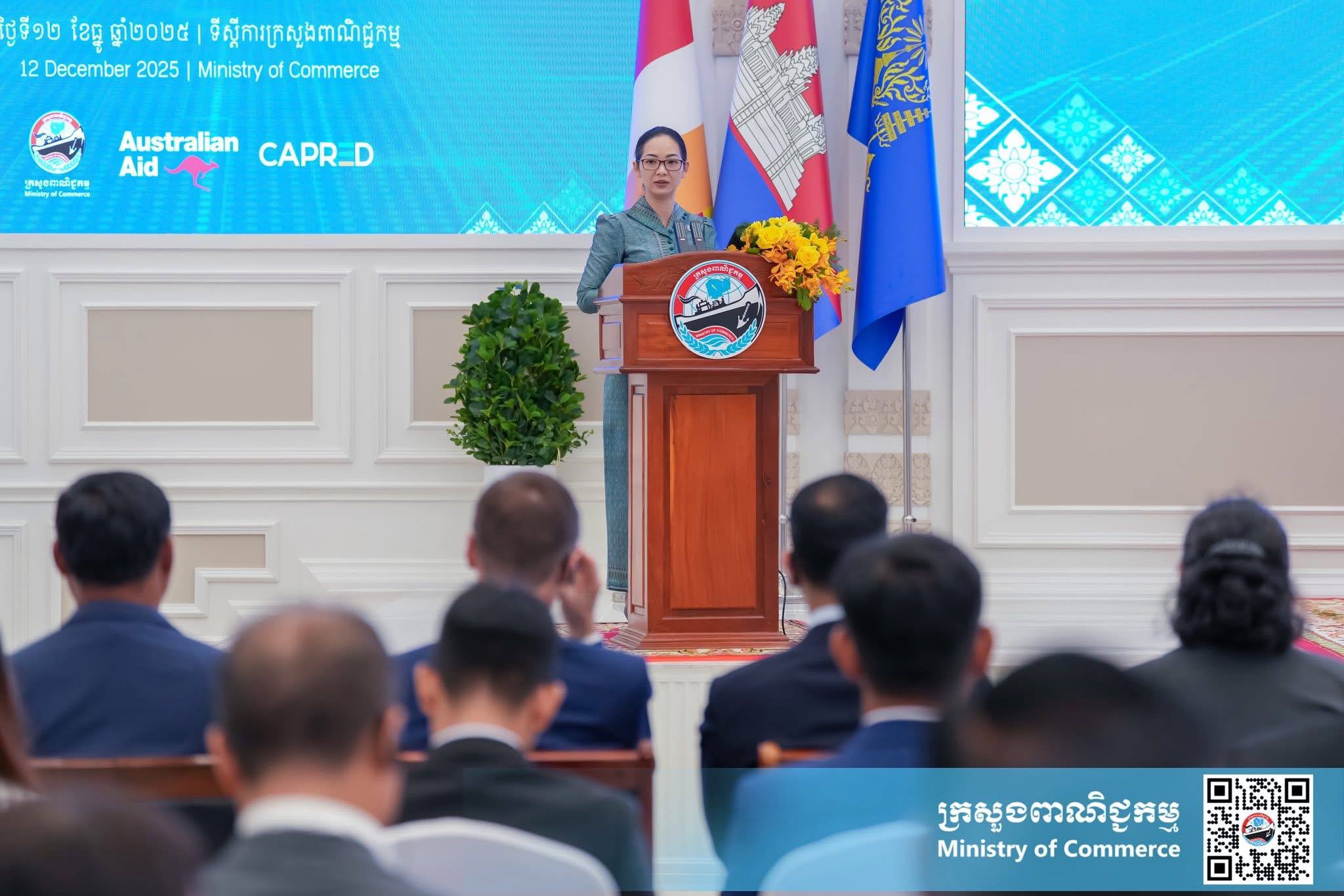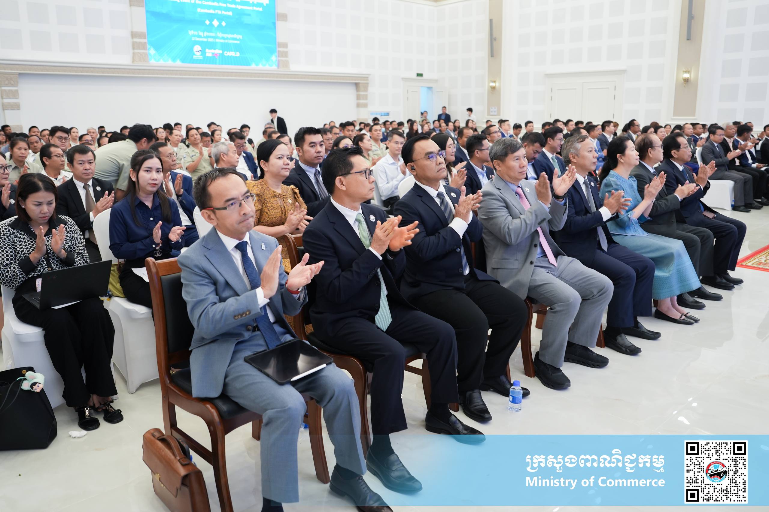 (ភ្នំពេញ)៖ នាព្រឹកថ្ងៃសុក្រ ទី១២ ខែធ្នូ ឆ្នាំ២០២៥ នៅទីស្ដីការក្រសួងពាណិជ្ជកម្ម លោកស្រី ចម និម្មល រដ្ឋមន្ត្រីក្រសួងពាណិជ្ជកម្ម និងលោក ដេរិក យីប ឯកអគ្គរដ្ឋទូត អូស្ត្រាលីប្រចាំនៅកម្ពុជា បានអញ្ជើញជាគណៈអធិបតី ក្នុងពិធីសម្ពោធដាក់ឱ្យប្រើប្រាស់ជាផ្លូវការ ថ្នាលព័ត៌មានកិច្ចព្រមព្រៀងពាណិជ្ជកម្មសេរីកម្ពុជា (Cambodia FTA Portal) ។