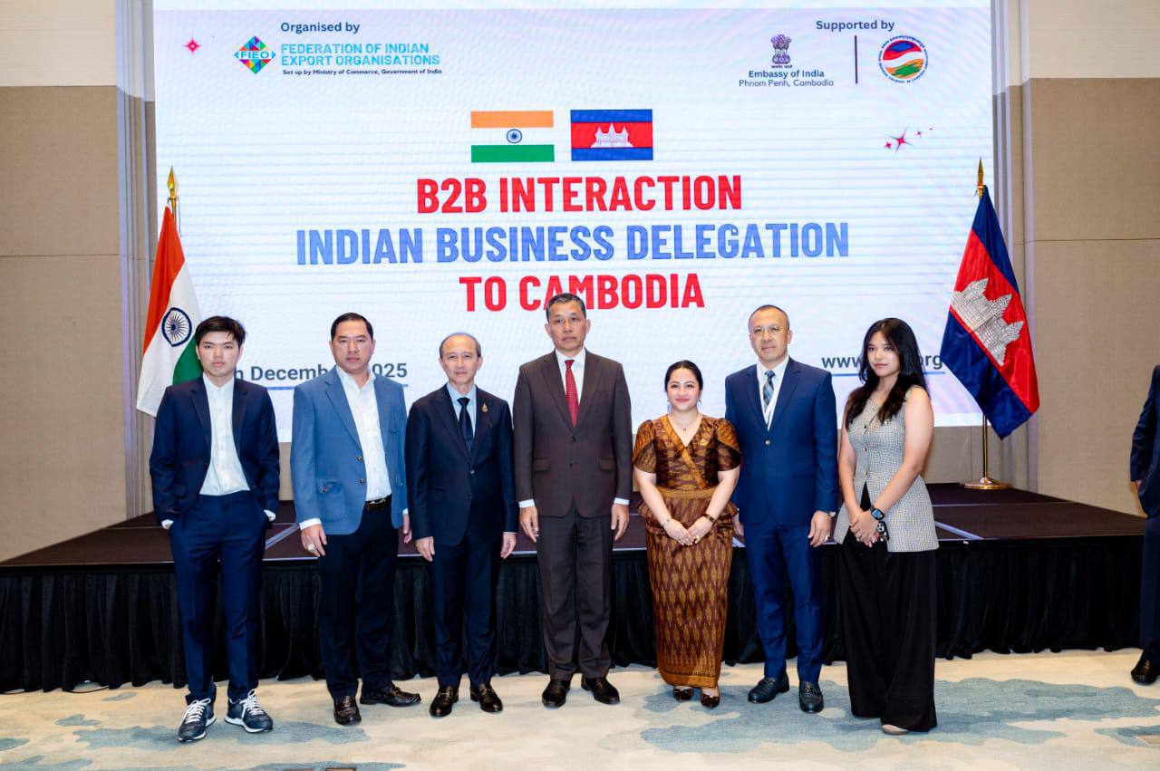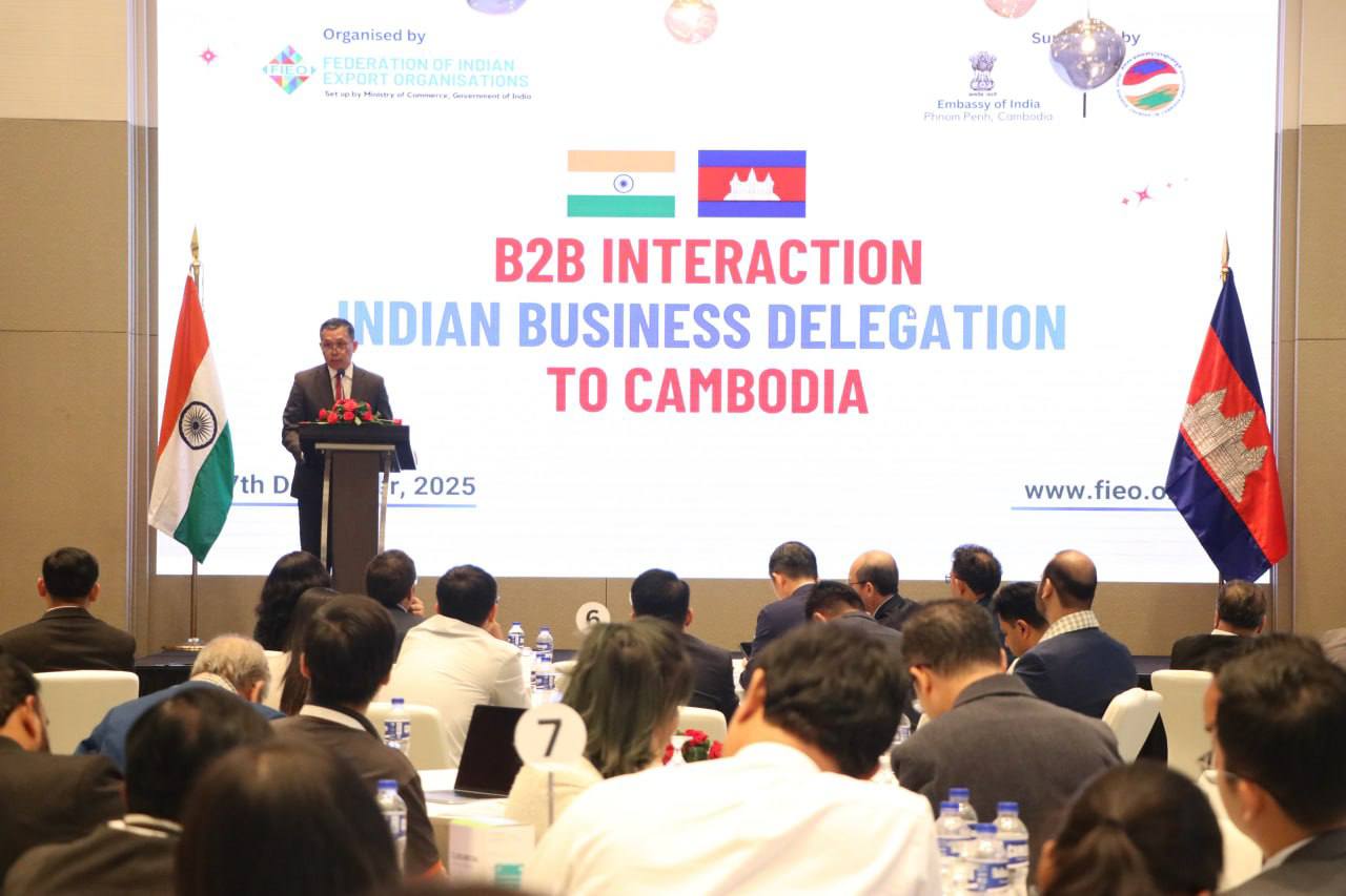 (ភ្នំពេញ)៖ ស្ថានទូតឥណ្ឌាប្រចាំកម្ពុជា នាថ្ងៃទី១៧ ខែធ្នូ ឆ្នាំ២០២៥នេះ បានរៀបចំកិច្ចប្រជុំការជួបផ្គូផ្គងអាជីវកម្ម (B2B Interaction) ឥណ្ឌា–កម្ពុជា ជាមួយតំណាងសហគមន៍ធុរកិច្ចកម្ពុជា ក្នុងគោលបំណងបន្តពង្រឹង និងលើកកម្ពស់ទំនាក់ទំនងពាណិជ្ជកម្ម និងសេដ្ឋកិច្ចទ្វេភាគីរវាងប្រទេសឥណ្ឌា និងកម្ពុជា។