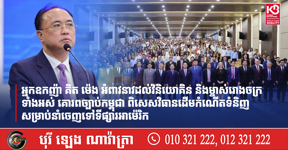 អ្នកឧកញ៉ា គិត ម៉េង អំពាវនាវដល់វិនិយោគិន និងម្ចាស់រោងចក្រទាំងអស់ គោរពច្បាប់កម្ពុជា ពិសេសវិធានដើមកំណើតទំនិញ សម្រាប់នាំចេញទៅទីផ្សារអាម៉េរិក