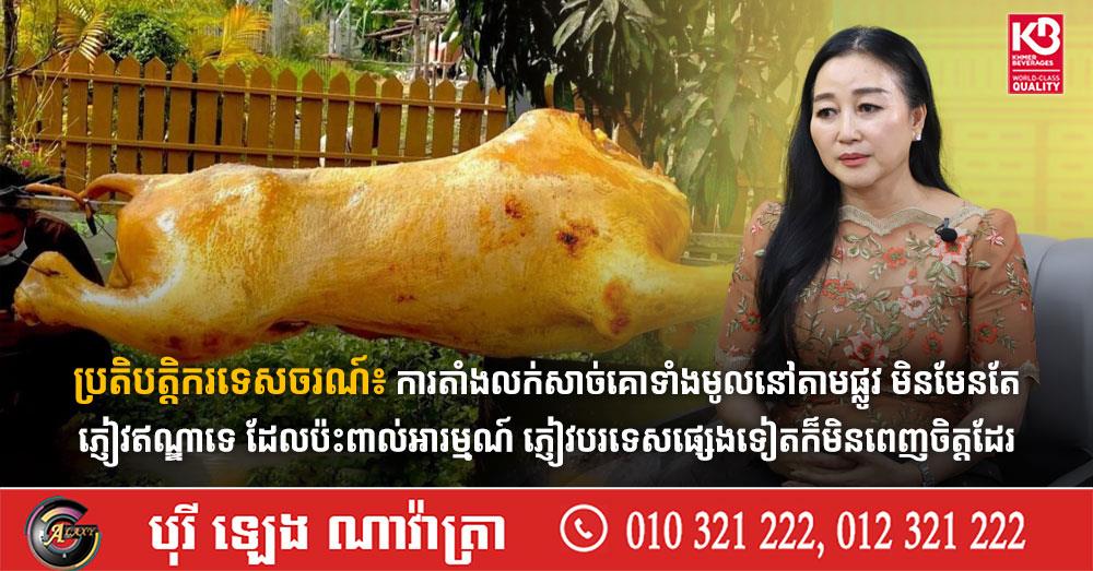 (ភ្នំពេញ)៖ លោកស្រី ឆាយ ស៊ីវលីន ប្រធានសមាគមទេសចរណ៍កម្ពុជា បានលើកឡើងថា ការតាំងលក់សាច់គោទាំងមូលនៅតាមដងផ្លូវ មិនមែនត្រឹមតែភ្ញៀវឥណ្ឌាទេ ដែលប៉ះពាល់អារម្មណ៍ សូម្បីតែភ្ញៀវបរទេសផ្សេងទៀតៗ ក៏មិនពេញចិត្តដែរ។