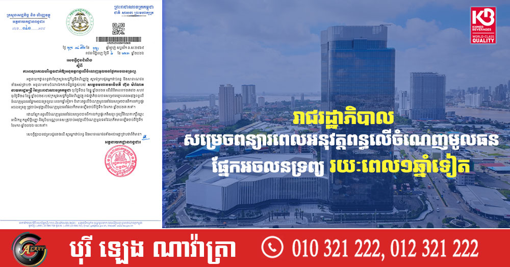 រាជរដ្ឋាភិបាលសម្រេចពន្យារពេលអនុវត្តពន្ធលើចំណេញមូលធន ផ្នែកអចលនទ្រព្យ រយៈពេល១ឆ្នាំទៀត (Video inside)