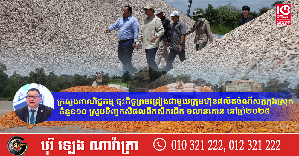 ក្រសួងពាណិជ្ជកម្ម ចុះកិច្ចព្រមព្រៀងជាមួយក្រុមហ៊ុនផលិតចំណីសត្វក្នុងស្រុក ចំនួន១០ ស្រូបទិញកសិផលពីកសិករជិត ១លានតោន នៅឆ្នាំ២០២៥ (Video inside)