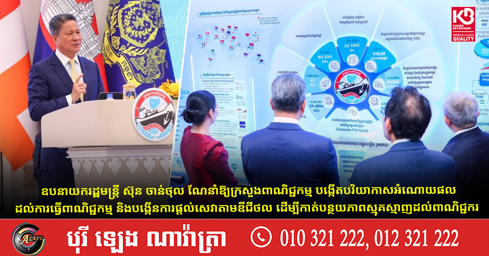 ឧបនាយករដ្ឋមន្ត្រី ស៊ុន ចាន់ថុល ណែនាំឱ្យក្រសួងពាណិជ្ជកម្ម បង្កើតបរិយាកាសអំណោយផលដល់ការធ្វើពាណិជ្ជកម្ម និងបង្កើនការផ្តល់សេវាតាមឌីជីថល ដើម្បីកាត់បន្ថយភាពស្មុគស្មាញដល់ពាណិជ្ជករ (Video inside)