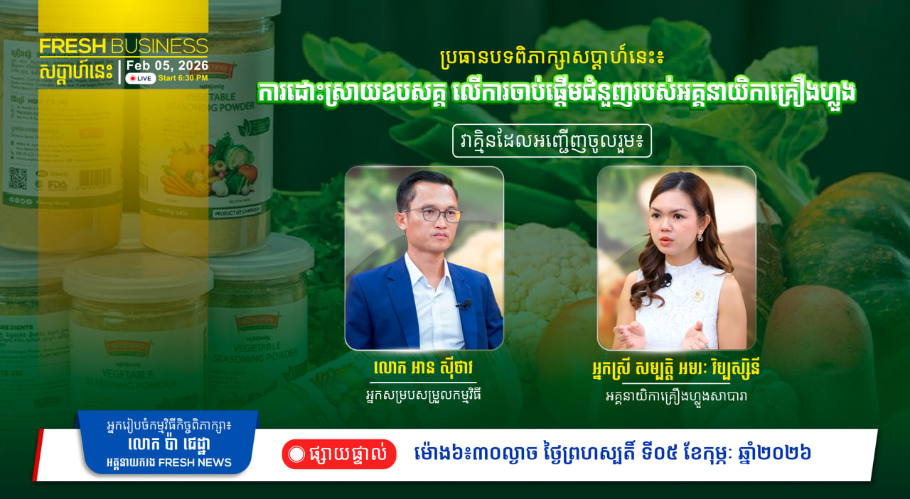 FRESH BUSINESS: កិច្ចពិភាក្សា ស្តីពី «ការដោះស្រាយឧបសគ្គ លើការចាប់ផ្ដើមជំនួញរបស់អគ្គនាយិកាគ្រឿងហ្លួង» សូមរង់ចាំទស្សនា នៅល្ងាចថ្ងៃព្រហស្បតិ៍សប្តាហ៍នេះ!