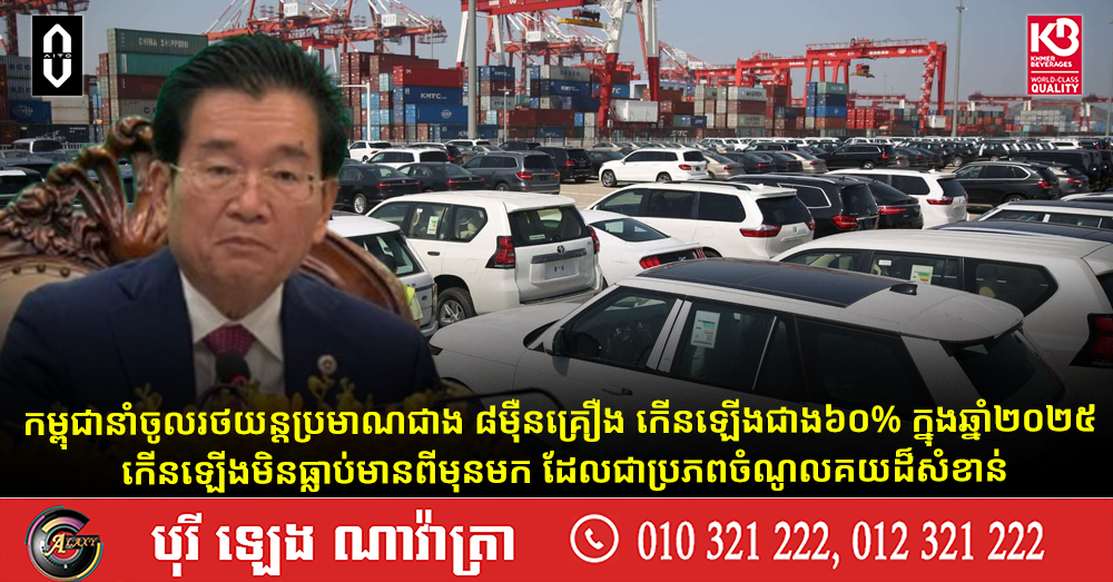 កម្ពុជានាំចូលរថយន្តប្រមាណជាង ៨ម៉ឺនគ្រឿង កើនឡើងជាង៦០% ក្នុងឆ្នាំ២០២៥ កើនឡើងមិនធ្លាប់មានពីមុនមក ដែលជាប្រភពចំណូលគយដ៏សំខាន់ (Video inside)