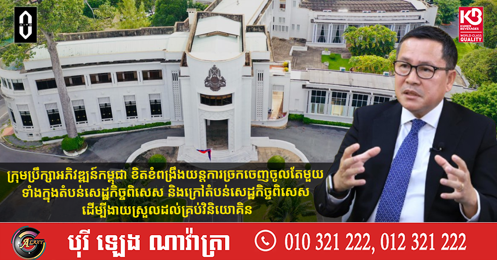 ក្រុមប្រឹក្សាអភិវឌ្ឍន៍កម្ពុជា ខិតខំពង្រឹងយន្តការច្រកចេញចូលតែមួយ ទាំងក្នុងតំបន់សេដ្ឋកិច្ចពិសេស និងក្រៅតំបន់សេដ្ឋកិច្ចពិសេស ដើម្បីងាយស្រួលដល់គ្រប់វិនិយោគិន (Video inside)