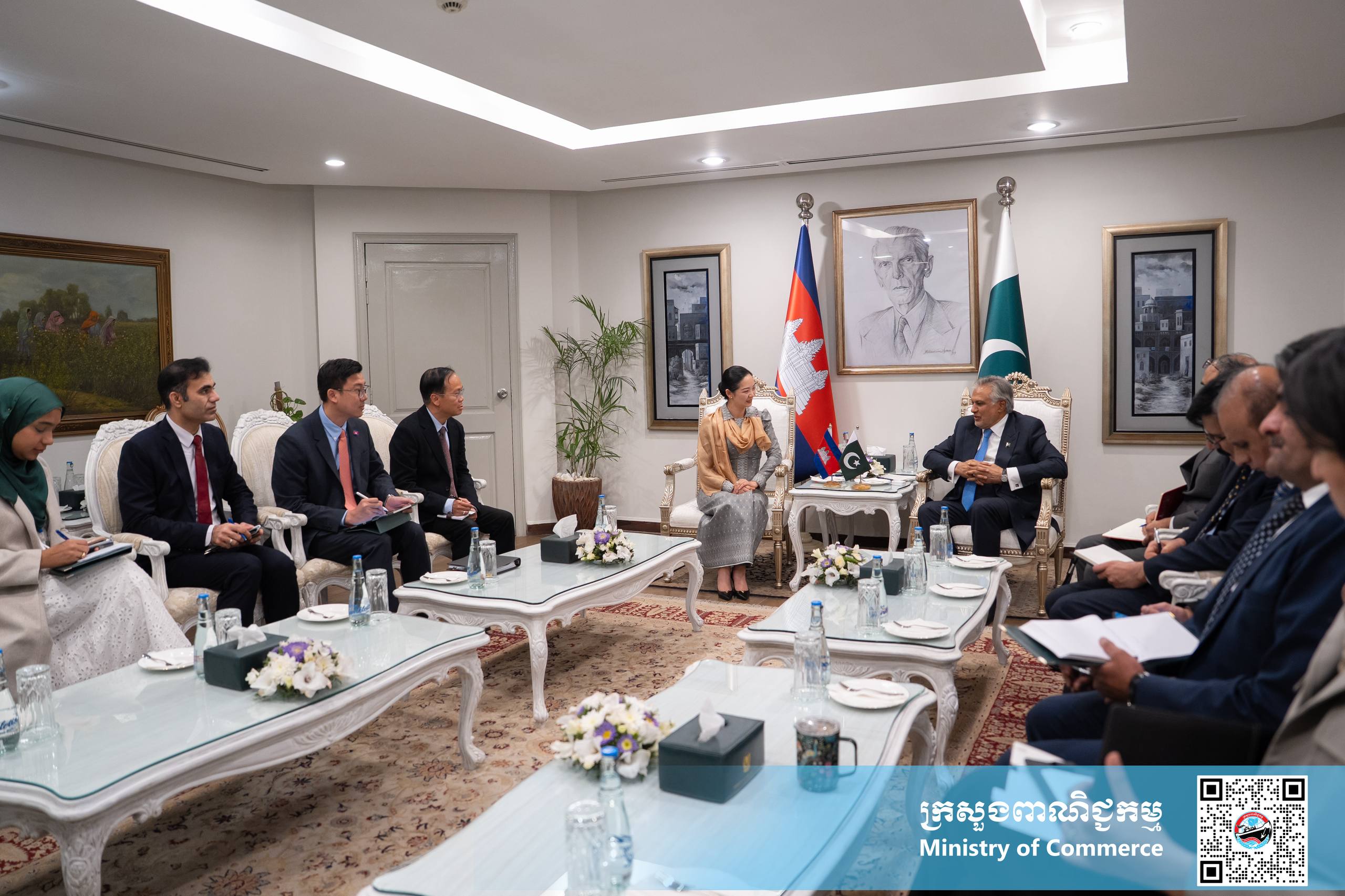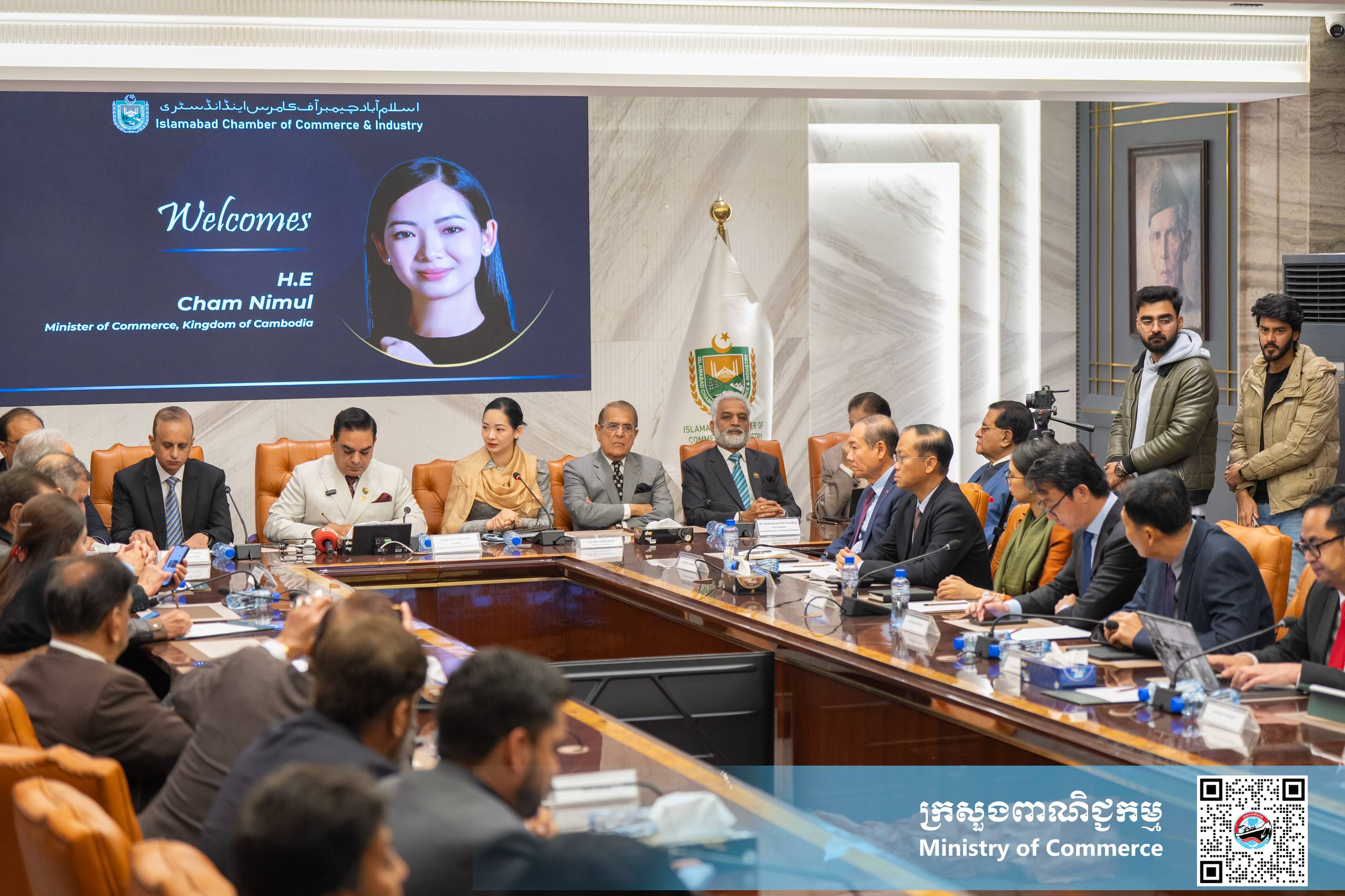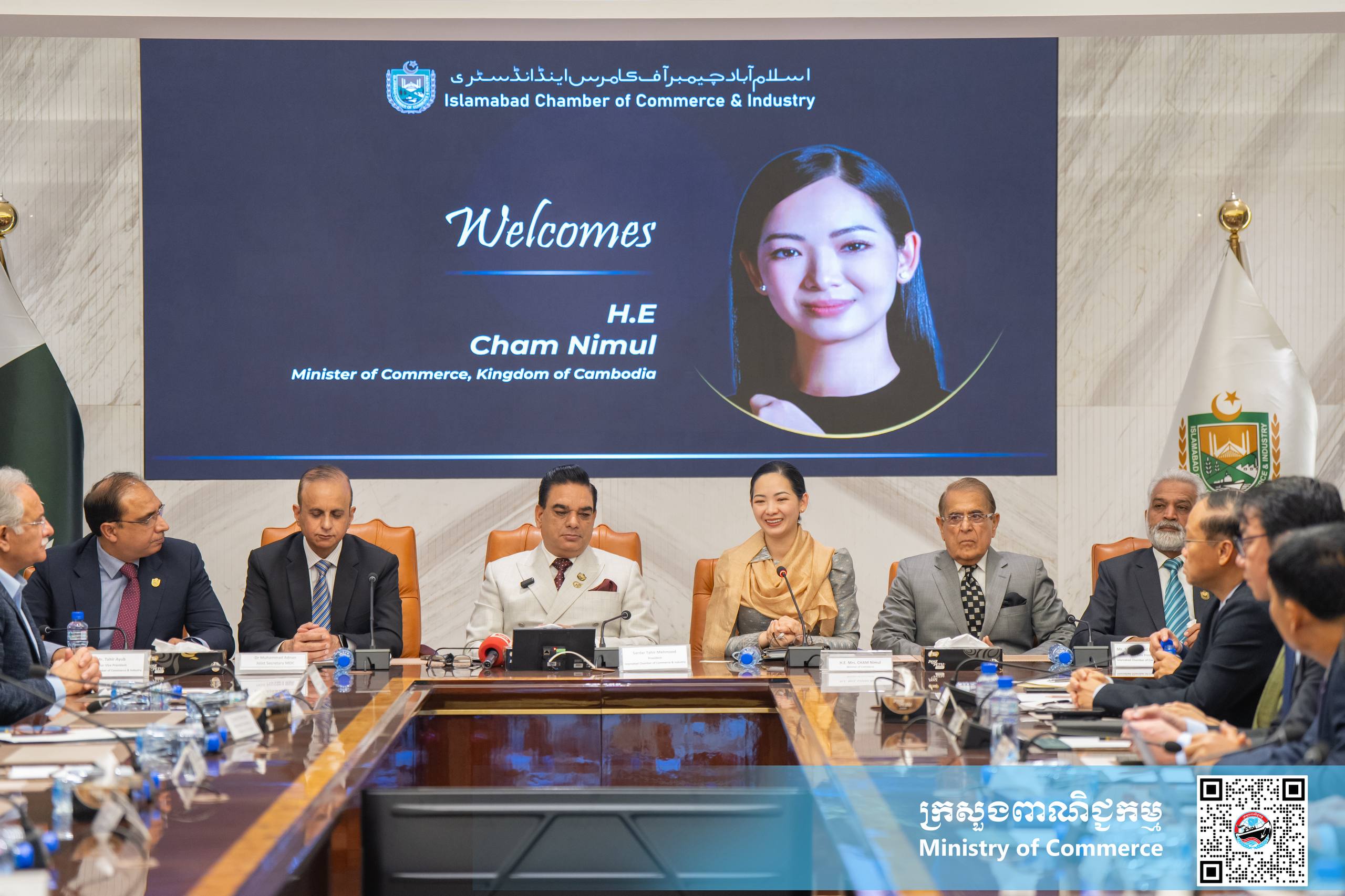 (ភ្នំពេញ)៖ លោកស្រី ចម និម្មល រដ្ឋមន្រ្តីក្រសួងពាណិជ្ជកម្មកម្ពុជា នាពេលថ្មីៗកន្លងទៅនេះ បានដឹកនាំគណៈប្រតិភូក្រសួងពាណិជ្ជកម្មកម្ពុជា ធ្វើទស្សនកិច្ចនៅ សាធារណរដ្ឋអ៊ីស្លាមប៉ាគីស្ថាន ដោយបានជួបពិភាក្សាការងារជាមួយថ្នាក់ដឹកនាំ និងវិស័យឯកជននៃសាធារណរដ្ឋឥស្លាមប៉ាគីស្ថានផងដែរ។