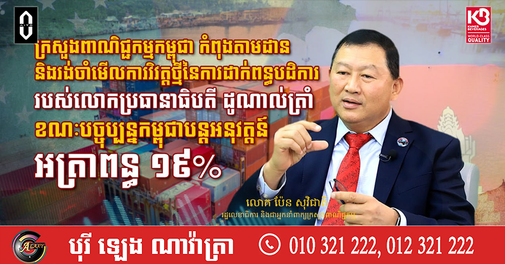 ក្រសួងពាណិជ្ជកម្មកម្ពុជា កំពុងតាមដាន និងរង់ចាំមើលការវិវត្តថ្មីនៃការដាក់ពន្ធបដិការ របស់លោកប្រធានាធិបតី ដូណាល់ត្រាំ ខណៈបច្ចុប្បន្នកម្ពុជាបន្តអនុវត្តន៍អត្រាពន្ធ ១៩% (Video inside)