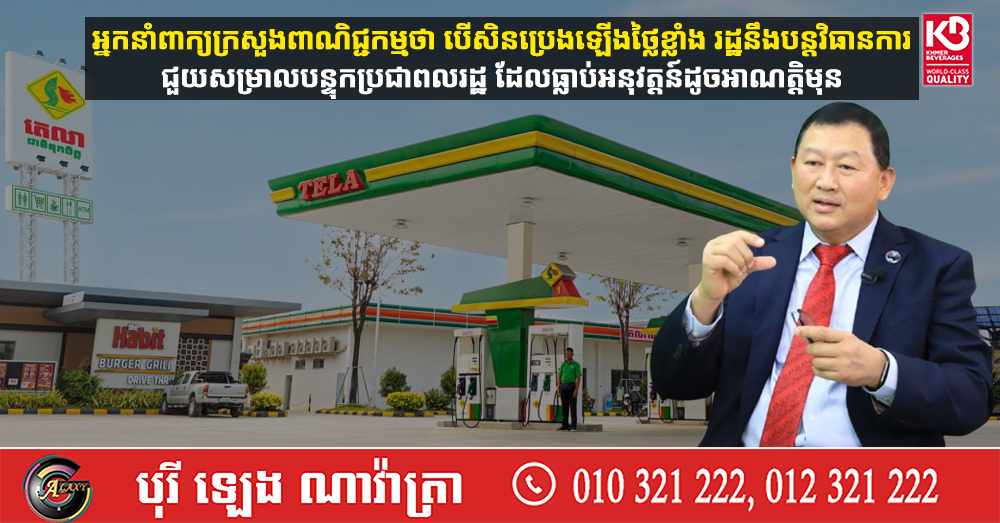 អ្នកនាំពាក្យក្រសួងពាណិជ្ជកម្មថា បើសិនប្រេងឡើងថ្លៃខ្លាំង រដ្ឋនឹងបន្តវិធានការជួយសម្រាលបន្ទុកប្រជាពលរដ្ឋ ដែលធ្លាប់អនុវត្តន៍ដូចអាណត្តិមុន