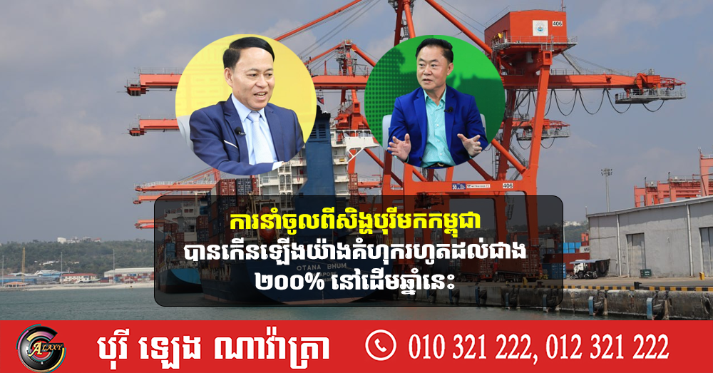 ការនាំចូលពីសិង្ហបុរីមកកម្ពុជា បានកើនឡើងយ៉ាងគំហុករហូតដល់ជាង ២០០% នៅដើមឆ្នាំនេះ