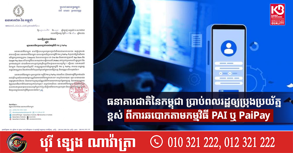 ធនាគារជាតិនៃកម្ពុជា ប្រាប់ពលរដ្ឋឲ្យប្រុងប្រយ័ត្នខ្ពស់ ពីការឆបោកតាមកម្មវិធី PAI ឬ PaiPay