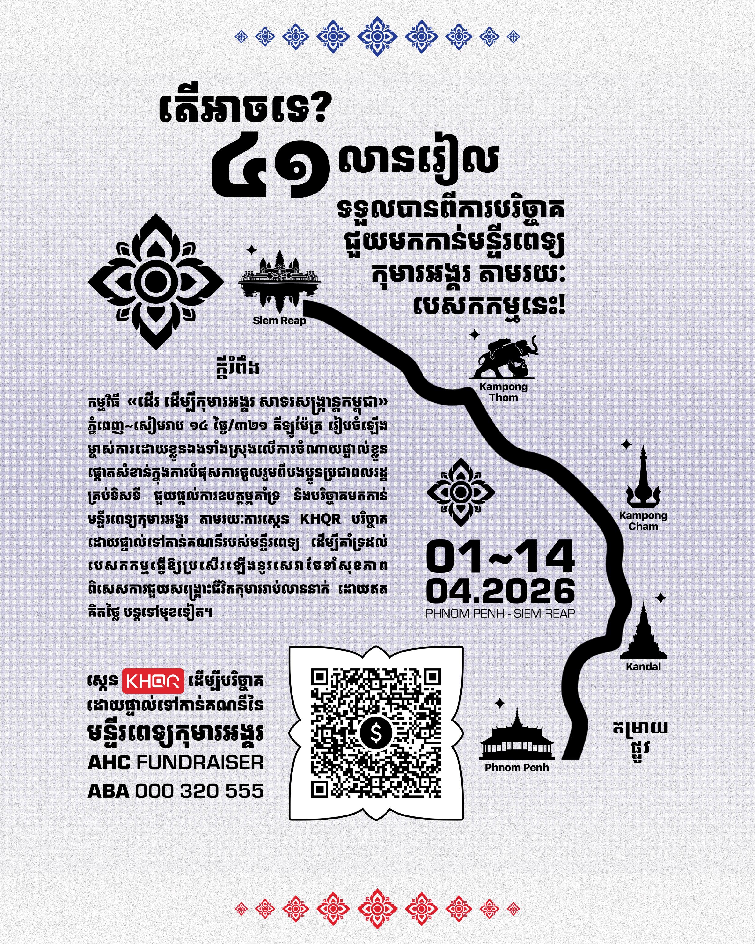 បេសកកម្មដែលមានឈ្មោះថា «ដើរដើម្បីកុមារអង្គរ» នឹងចាប់ផ្តើមចេញដំណើរនៅថ្ងៃទី០១ ខែមេសា ឆ្នាំ២០២៦ នេះ ដោយរំពឹងថានឹងប្រើប្រាស់រយៈពេល ១៤ ថ្ងៃ ដោយឆ្លងកាត់ភូមិសាស្ត្រខេត្តកណ្តាល ខេត្តកំពង់ចាម ទីរួមខេត្តកំពង់ធំ និងបញ្ចប់នៅទីរួមខេត្តសៀមរាប នាថ្ងៃទី១៤ ខែមេសា ឆ្នាំ២០២៦ ដែលចំនឹងថ្ងៃបុណ្យចូលឆ្នាំថ្មី ប្រពៃណីជាតិខ្មែរយើង។