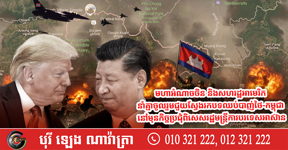 មហាអំណាចចិន និងសហរដ្ឋអាមេរិក នាំគ្នាចូលរួមជួយស្វែងរកបទឈប់បាញ់ថៃ-កម្ពុជា នៅមុនកិច្ចប្រជុំពិសេសរដ្ឋមន្រ្តីការបរទេសអាស៊ាន (Video inside)