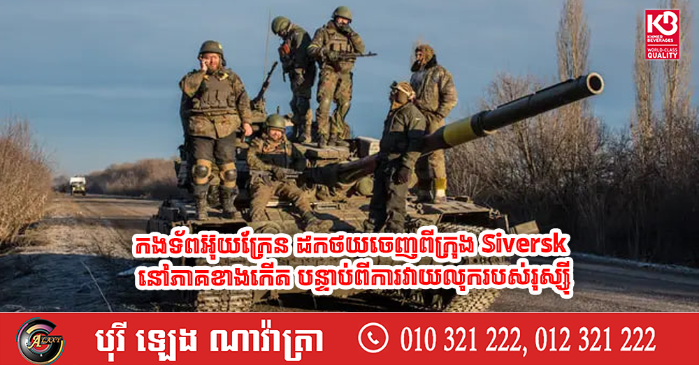 (កៀវ)៖ យោធាអ៊ុយក្រែនកាលពីថ្ងៃអង្គារ ទី២៣ ខែធ្នូ បាននិយាយថា កងកម្លាំងរបស់ខ្លួន បានដកថយចេញពីក្រុង Siversk ភាគខាងកើតប្រទេស ស្របពេលដែលកងទ័ពរុស្ស៉ី កំពុងបន្តប្រតិបត្តិការវាយលុកលើសមរភូមិ ក្រោមគោលដៅវាយយកក្រុងសំខាន់ៗ