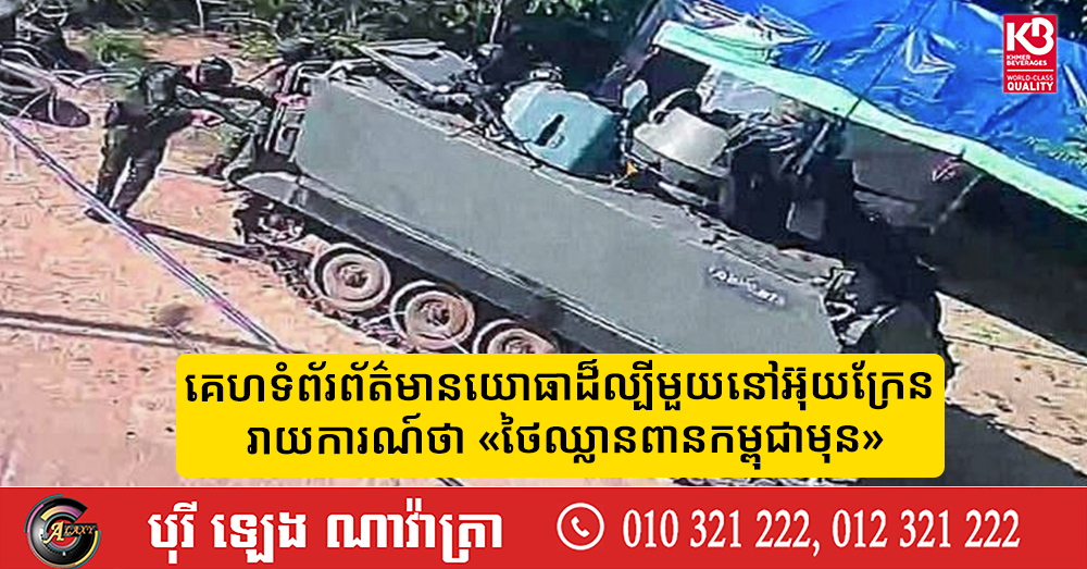(កៀវ)៖ Militarnyi ដែលជាគេហទំព័រព័ត៌មានយោធាដ៏ល្បីមួយនៅអ៊ុយក្រែនកាលពីថ្ងៃទី៨ ខែធ្នូ បានរាយការណ៍ថារថក្រោះ និងរថពាសដែករបស់កងទ័ពថៃបានឆ្លងដែន និងឈ្លានពានចូលទឹកដីកម្ពុជា។ នៅក្នុងវីដេអូដែលត្រូវបានគេបង្ហោះលើបណ្ដាញទំនាក់ទំនងសង្គម គេឃើញរថពាកដែករបស់ថៃធុន M113 ACAV បានបើកឆ្លងព្រំដែន ហើយការឈ្លានពាននេះក៏ត្រូវបានទទួលស្គាល់ផងដែរដោយក្រសួងការពារជាតិកម្ពុជា។