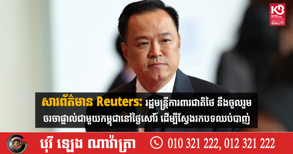 សារព័ត៌មាន Reuters: រដ្ឋមន្ត្រីការពារជាតិថៃ នឹងចូលរួមចរចាផ្ទាល់ជាមួយកម្ពុជានៅថ្ងៃសៅរ៍ ដើម្បីស្វែងរកបទឈប់បាញ់