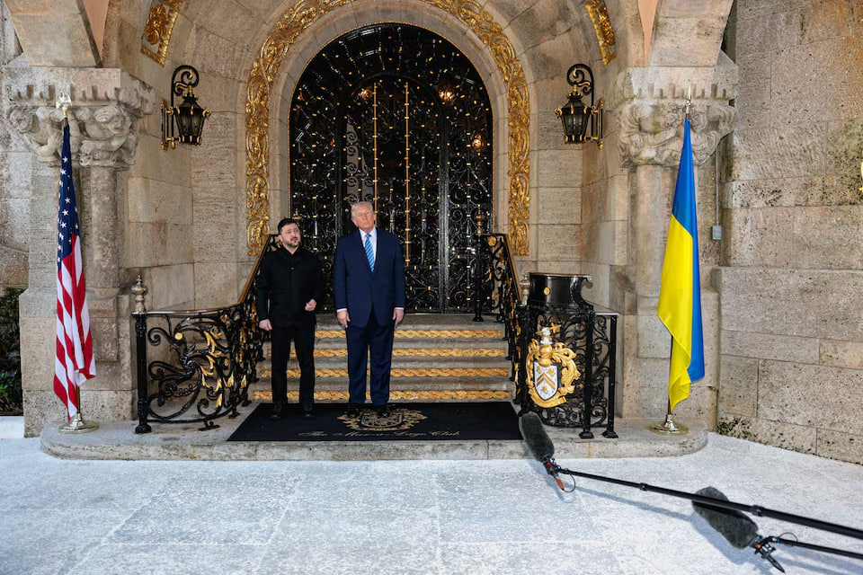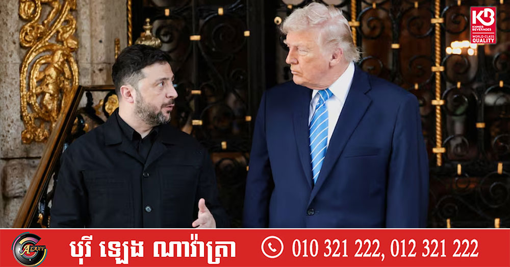 លោក ត្រាំ និងលោក ហ្សេលេនស្គី បានថ្លែងនៅឯសន្និសីទសារព័ត៌មានរួមគ្នាមួយ បន្ទាប់ពីកិច្ចប្រជុំនៅឯភូមិគ្រឹះ Mar-a-Lago របស់លោក ត្រាំ ក្នុងរដ្ឋ Florida កាលពីរសៀលថ្ងៃអាទិត្យ។ មេដឹកនាំទាំង២ បានរាយការណ៍ពីភាពរីកចម្រើនលើបញ្ហាសំខាន់ចំនួន២ ដែលជាចំណុចខ្ទាស់ធំបំផុតនៅក្នុងកិច្ចចរចាស្វែងរកសន្តិភាព នោះគឺការធានាសន្តិសុខសម្រាប់អ៊ុយក្រែន និងទឹកដីនៃ តំបន់ដុនបាសរបស់អ៊ុយក្រែនដែលរុស្ស៉ីកំពុងព្យាយាមវាយដណ្ដើមកាន់កាប់។