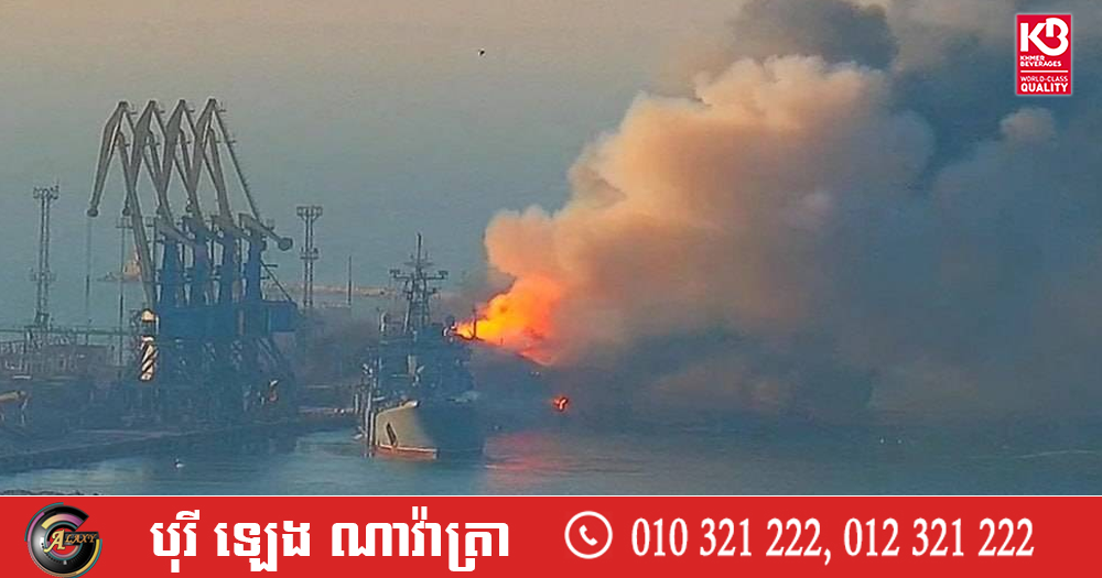 អ៊ុយក្រែនថា រុស្ស៊ីវាយប្រហារកំពង់ផែសមុទ្រខ្មៅរបស់អ៊ុយក្រែន បណ្តាលឱ្យខូចខាតកប៉ាល់ដឹកទំនិញ (Video inside)