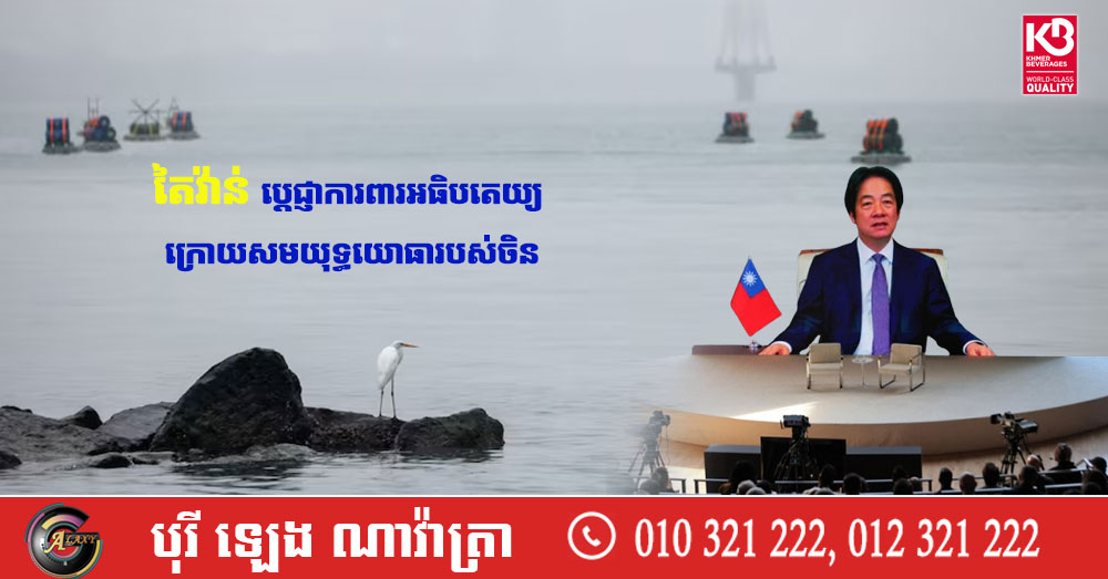 (តៃប៉ិ)៖ មេដឹកនាំតៃវ៉ាន់ លោក Lai Ching-te នៅថ្ងៃព្រហស្បតិ៍ ទី១ ខែមករា បាននិយាយថាកោះតៃវ៉ាន់មានការប្ដេជ្ញាចិត្តដើម្បីការពារអធិបតេយ្យរបស់ខ្លួន ហើយពង្រឹងសមត្ថភាពការពារជាតិ បន្ទាប់ពីចិនធ្វើសមយុទ្ធយោធាជុំវិញកោះតៃវ៉ាន់។ នេះបើតាមការចេញផ្សាយដោយទីភ្នាក់ងារសារព័ត៌មាន Reuters។