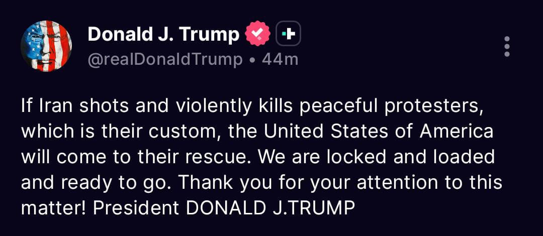 គួរបញ្ជាក់ថា កាលពីថ្ងៃសុក្រ លោក ដូណាល់ ត្រាំ បានបង្ហោះសារគំរាមថា សហរដ្ឋអាមេរិក ត្រៀមលក្ខណៈរួចជាស្រេច ដើម្បីឆ្លើយតប ប្រសិនបើរដ្ឋាភិបាលអ៉ីរ៉ង់ ហ៊ានបង្រ្កាបយ៉ាងព្រៃផ្សៃ លើក្រុមបាតុករ។ ការធ្វើបាតុកម្មប្រឆាំងការឡើងថ្លៃទំនិញ និងបញ្ហាសេដ្ឋកិច្ច បានផ្ទុះឡើងនៅប្រទេសអ៉ីរ៉ង់ ចាប់តាំងពីចុងសប្តាហ៍មុន ហើយមកទល់ពេលនេះ មនុស្សយ៉ាងហោច៦នាក់ ត្រូវរាយការណ៍ថាបានបាត់បង់ជីវិត អំឡុងការប៉ះទង្គិចគ្នារវាងកងកម្លាំងសន្តិសុខនិងក្រុមអ្នកតវ៉ា៕