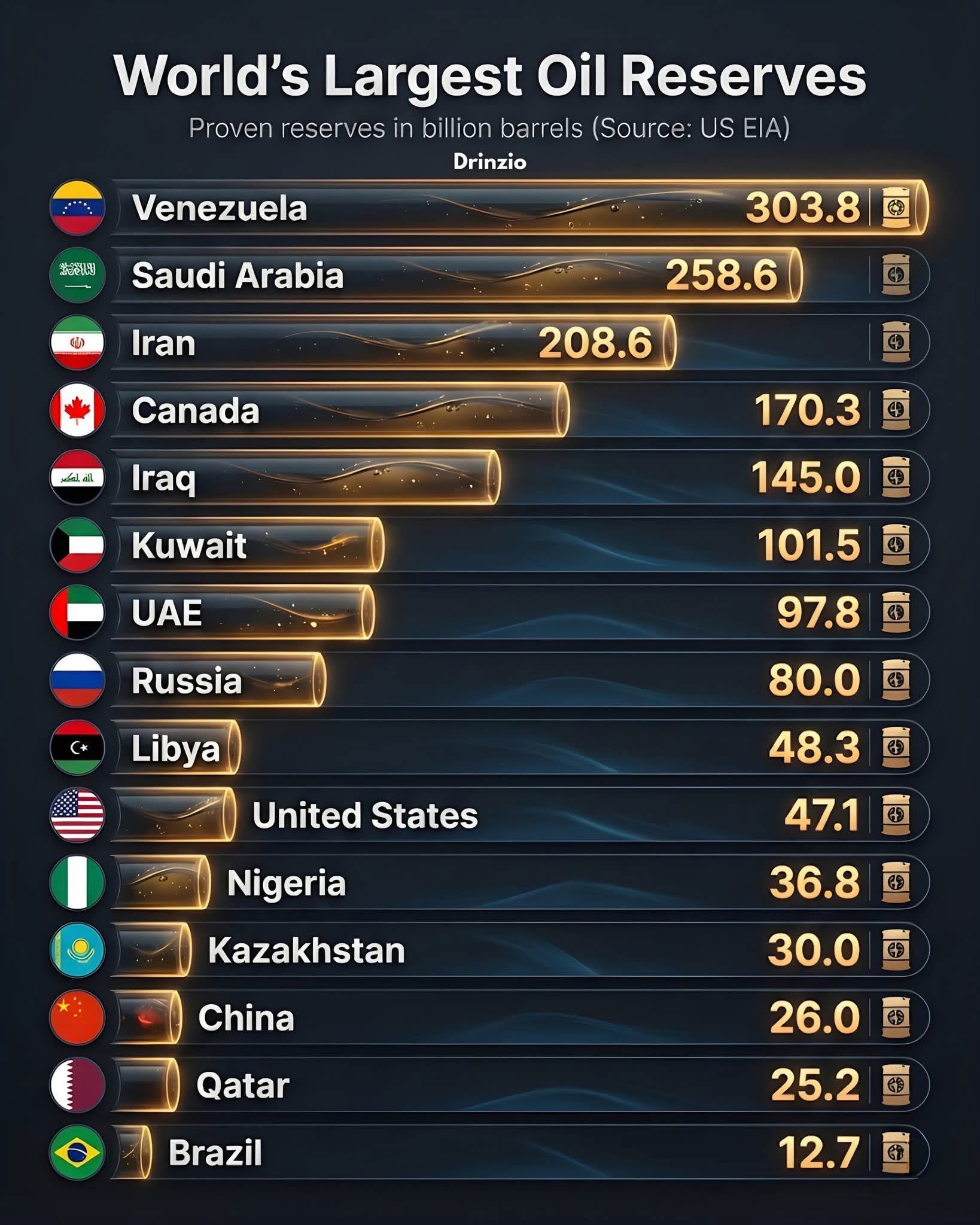 ប្រទេសវេណេស៊ុយអេឡា គឺជាប្រទេសដែលស្តុកប្រេងបម្រុងធំជាងគេបំផុតលើលោក !