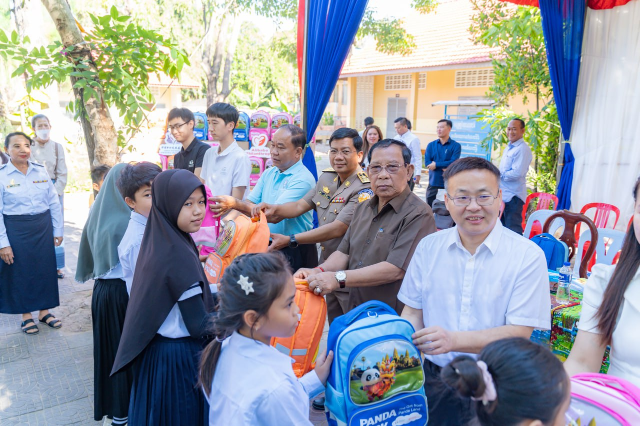 លោកក៏បានថ្លែងនូវអំណរគុណតាមរយៈលោក កឹម ច័ន្ទធូ ជូនឯកឧត្តម កឹមរ័ត្ន វិសិដ្ឋ ដែលតែងបានរួមចំណែកប្រកៀកស្មាជាប់ជានិច្ច ជាមួយមូលនិធិចិន CFRDក្នុងការលើកទឹកចិត្តដល់ការសិក្សារបស់ សិស្សានុសិស្សកម្ពុជា។ លោកក៏បានរំលេចថា អំណោយកញ្ចប់ Panda Pack ដែលជាការបរិច្ចាគរបស់ប្រជាជនចិន គឺជាផ្នែកមួយនៃសកម្មភាពមនុស្សធម៌ និងការរួមចំណែករបស់សង្គមស៊ីវិលរបស់ប្រទេសចិន ដែលបាននិងកំពុងអនុវត្ត ជាបន្តបន្ទាប់នៅកម្ពុជា ដើម្បីប្រកៀកស្មាគ្នាជាមួយវេទិកាសម្ព័ន្ធសង្គមស៊ីវិល ចូលរួមលើកកម្ពស់គុណភាពអប់រំ បណ្តុះធនធានមនុស្ស និងពង្រឹងមិត្តភាពជាប្រពៃណីរវាងប្រជាជននិងប្រជាជន កម្ពុជា–ចិន ឱ្យកាន់តែរឹងមាំ និងមានអនាគតរួមគ្នាប្រកបដោយស្នាមញញឹមនិងវិបុលភាព។