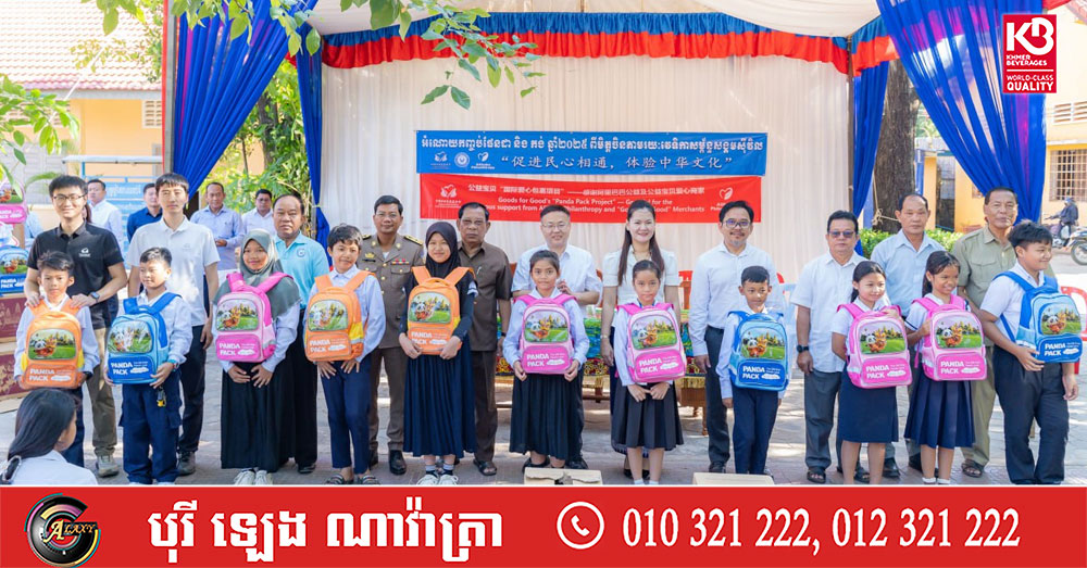 (ភ្នំពេញ)៖ នាព្រឹកថ្ងៃទី៥ ខែមករា ឆ្នាំ២០២៦ នៅសាលាបឋមសិក្សាជ្រោយសាគូរ៉ា បានរៀបចំព្រឹត្តិការណ៍ផ្តល់អំណោយកញ្ចប់ Panda Pack រួមមានកាតាបនិងសម្ភារសិក្សាដែលជាអំណោយរបស់មូលនិធិចិន CFRD តាមរយៈវេទិកាសម្ព័ន្ធសង្គមស៊ីវិល នៃទីស្តីការគណៈរដ្ឋមន្ត្រី ជូនដល់សិស្សានុសិស្សចំនួន៥៦២នាក់ ដើម្បីលើកទឹកចិត្តដល់ការសិក្សា និងបង្កើនកម្លាំងចិត្តក្នុងការរៀនសូត្រ។