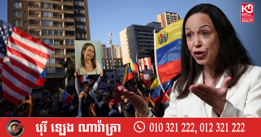 (វ៉ាស៊ីនតោន)៖ មេដឹកនាំបក្សប្រឆាំងសំខាន់របស់វេណេស៊ុយអេឡា លោកស្រី ម៉ារីយ៉ា កូរីណា ម៉ាឆាដូ (Maria Corina Machado) បានប្តេជ្ញាថានឹងត្រឡប់ទៅប្រទេសកំណើតវិញឱ្យបានឆាប់បំផុត ដោយបានកោតសរសើរលោក ដូណាល់ ត្រាំ ចំពោះការទម្លាក់គូរប្រជែងរបស់ខ្លួន គឺលោក ម៉ាឌូរ៉ូ។ នេះបើតាមការចេញផ្សាយ ដោយទីភ្នាក់ងារសារព័ត៌មាន Reuters។