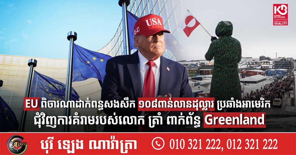EU ពិចារណាដាក់ពន្ធសងសឹក ១០៨ពាន់លានដុល្លារប្រឆាំងអាមេរិក ជុំវិញការគំរាមរបស់លោក ត្រាំ ពាក់ព័ន្ធ Greenland (Video inside)