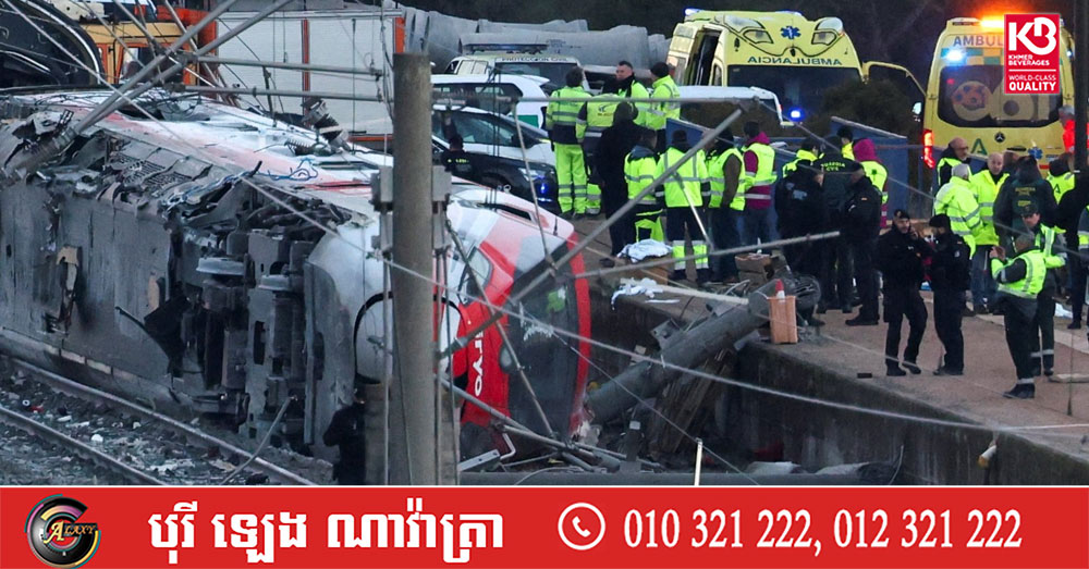 (កូដូបា)៖ អាជ្ញាធរអេស្ប៉ាញបានប្រកាសថា មនុស្សយ៉ាងហោចណាស់ ៣៩នាក់បានស្លាប់នៅភាគខាងត្បូងប្រទេស បន្ទាប់ពីរថភ្លើងល្បឿនលឿនមួយគ្រឿងបានធ្លាក់ផ្លូវ និងបុកជាមួយរថភ្លើងមួយគ្រឿងទៀតដែលមកពីទិសផ្ទុយគ្នា ដែលជាគ្រោះថ្នាក់ផ្លូវដែកដ៏អាក្រក់បំផុតនៅក្នុងប្រទេសចាប់តាំងពីឆ្នាំ២០១៣។ នេះបើតាមការចេញផ្សាយ ដោយទីភ្នាក់ងារសារព័ត៌មាន Reuters។