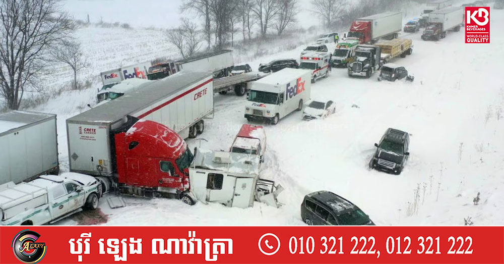 រថយន្ត ១០០គ្រឿង បើកបុកបន្តកន្ទុយគ្នានៅរដ្ឋ Michigan សហរដ្ឋអាមេរិក ដោយសារតែព្យុះព្រិលរដូវរងា (Video inside)