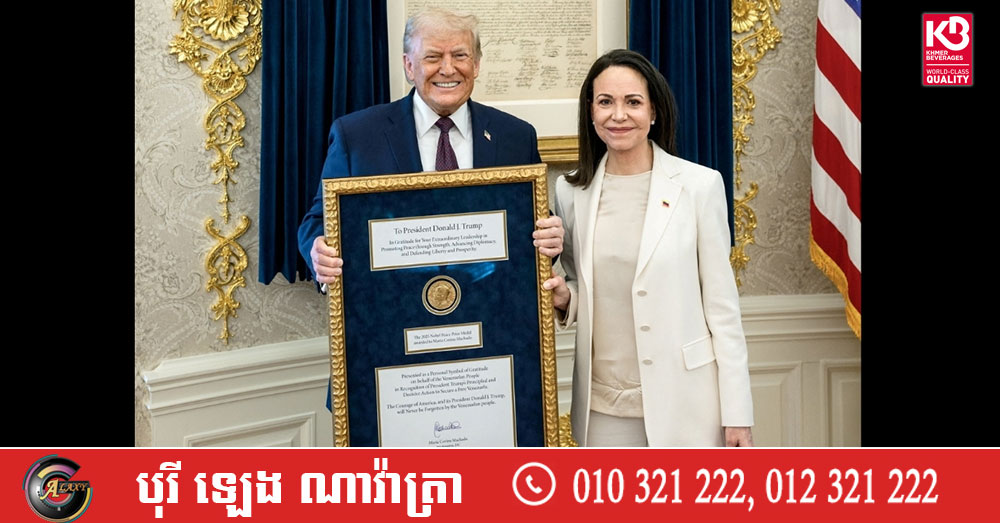 (វ៉ាស៊ីនតោន)៖ ប្រធានាធិបតីអាមេរិក លោក ដូណាល់ ត្រាំ កាលពីថ្ងៃអង្គារ ទី២០ ខែមករា បាននិយាយថារូបលោកកំពុងពិចារណាលើមុខតំណែងនៅក្នុងប្រទេសវ៉េណេស៊ុយអេឡា សម្រាប់មេដឹកនាំគណបក្សប្រឆាំង លោកស្រី Maria Corina Machado តែមិនបានបង្ហើបឱ្យដឹងថាជាតំណែងអ្វីនោះទេ។ នេះបើតាមការចេញផ្សាយដោយទីភ្នាក់ងារសារព័ត៌មាន Reuters។