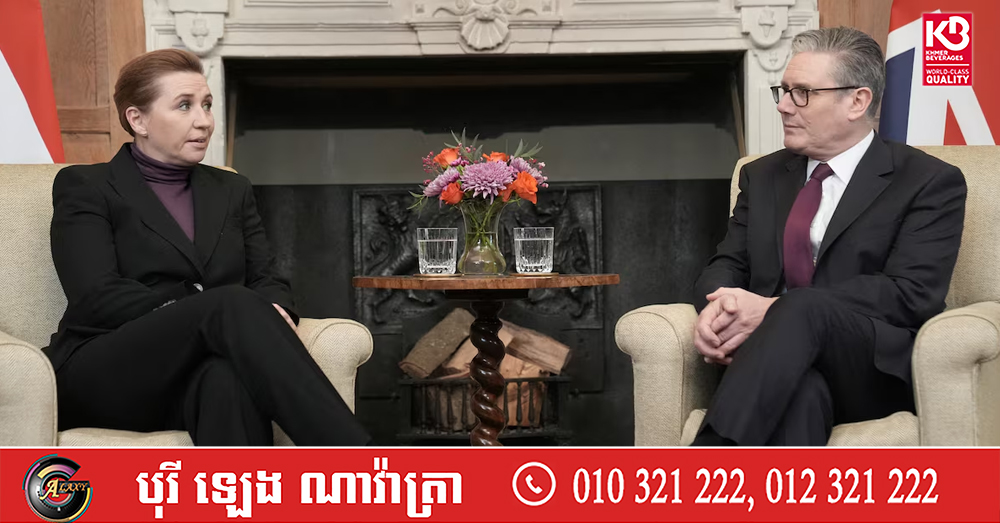 (ឡុងដ៍)៖ នាយករដ្ឋមន្ត្រីអង់គ្លេស លោក Keir Starmer បានប្រាប់នាយករដ្ឋមន្ត្រីដាណឺម៉ាក លោកស្រី មេតេ ហ្វ្រេដេរិកសិន (Mette Frederiksen) នៅថ្ងៃព្រហស្បតិ៍នេះថា ការសម្រេចចិត្តរបស់ប្រធានាធិបតីអាមេរិក លោក ដូណាល់ ត្រាំ ក្នុងការមិនបន្តគំរាមកំហែងពន្ធគយលើប្រទេសអឺរ៉ុបជុំវិញរឿងហ្គ្រីនឡែន គឺជាជំហានប្រកបដោយភាពជាក់ស្តែងនិយម និងសុភវិនិច្ឆ័យ។ នេះបើតាមការចេញផ្សាយ ដោយទីភ្នាក់ងារសារព័ត៌មាន Reuters។