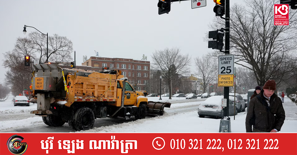 (វ៉ាស៊ីនតោន)៖ ព្យុះរដូវរងាដ៏ធំសម្បើមមួយបានវាយប្រហារសហរដ្ឋអាមេរិកនៅថ្ងៃអាទិត្យនេះ ដោយបណ្តាលឱ្យអតិថិជនជាង ៦៧០,០០០នាក់គ្មានអគ្គិសនីប្រើប្រាស់ និងបង្ខំឱ្យក្រុមហ៊ុនអាកាសចរណ៍លុបចោលជើងហោះហើរជិត ១០,០០០ជើង។ នេះបើតាមការចេញផ្សាយ ដោយទីភ្នាក់ងារសារព័ត៌មាន Reuters។