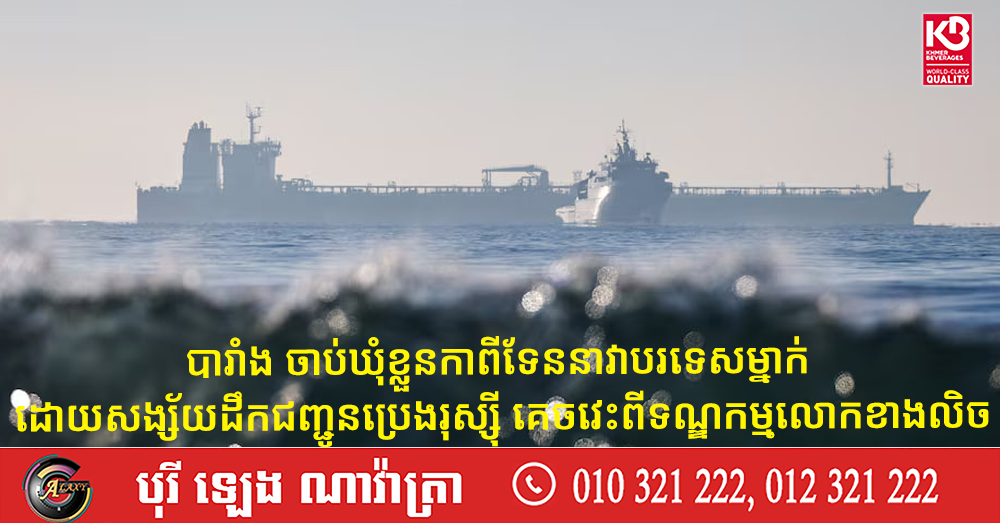 (Marseille)៖ ការិយាល័យរដ្ឋអាជ្ញានៃទីក្រុង Marseille ប្រទេសបារាំង បានប្រកាសថា អ្នកបេីកនាវាដឹកប្រេងដែលស្ទាក់ចាប់ដោយកងទ័ពជើងទឹកបារាំង ត្រូវបានឃុំខ្លួនដេីម្បីស៉េីអង្កេត ជុំវិញបញ្ហាប្រេីប្រាស់ទង់ជាតិក្លែងក្លាយ។ នេះបេីយោងតាមការចេញផ្សាយដោយទីភ្នាក់ងារសារព័ត៌មាន Reuters នៅថ្ងៃចន្ទ ទី២៦ ខែមករា ឆ្នាំ ២០២៦។