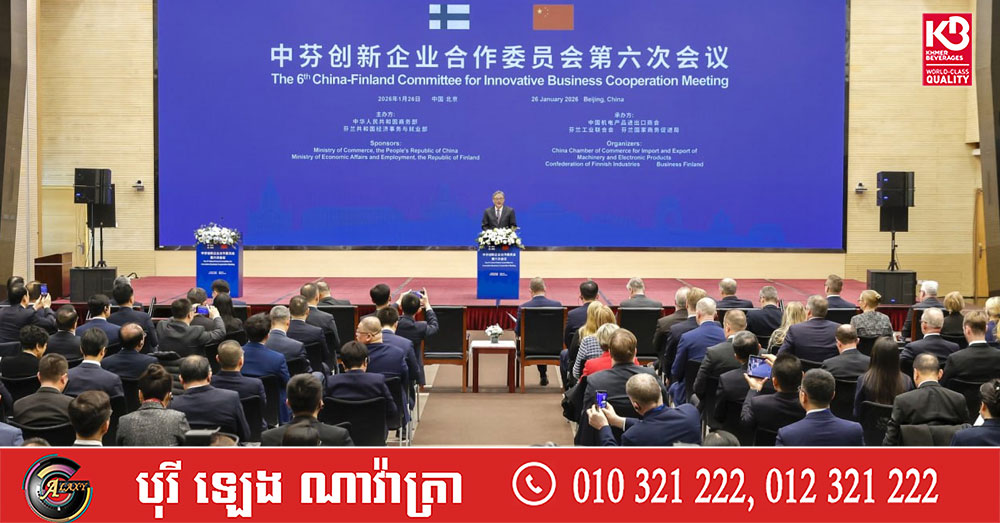 (ប៉េកាំង)៖ ក្នុងអំឡុងពេលដែលលោក Petteri Orpo នាយករដ្ឋមន្រ្តីហ្វាំងឡង់ បំពេញទស្សនកិច្ចនៅប្រទេសចិន កិច្ចប្រជុំលើកទី៦នៃគណៈកម្មការកិច្ចសហប្រតិបត្តិការ រវាងសហគ្រាសច្នៃប្រឌិតថ្មីចិន-ហ្វាំងឡង់ បានបើកធ្វើនៅក្រុងប៉េកាំង កាលពីថ្ងៃទី២៦ ខែមករា។