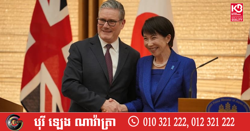 (តូក្យូ)៖ នាយករដ្ឋមន្ត្រីអង់គ្លេស លោក Keir Starmer បានឱ្យដឹងនាថ្ងៃសៅរ៍នេះថា អង់គ្លេស និងជប៉ុនព្រមព្រៀងគ្នាពង្រឹងទំនាក់ទំនងការពារជាតិ និងសេដ្ឋកិច្ច ដែលជាកិច្ចប្រឹងប្រែងមួយទៀតរបស់លោក បន្ទាប់ពីបង្កើតទំនាក់ទំនងជិតស្និទ្ធជាមួយចិន។ នេះបេីយោងតាមការចេញផ្សាយដោយទីភ្នាក់ងារសារព័ត៌មាន AFP នៅថ្ងៃសៅរ៍ ទី៣១ ខែមករា ឆ្នាំ ២០២៦។