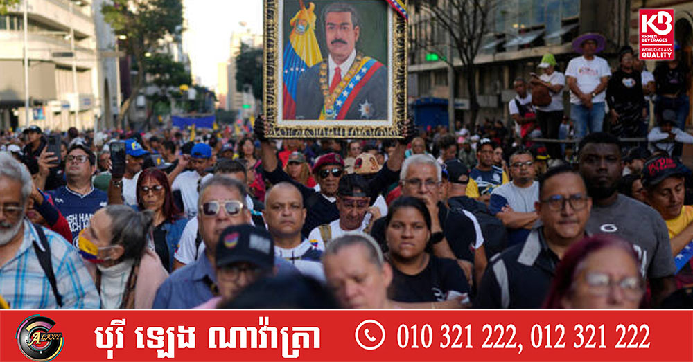 ប្រជាជនវ៉េណេស៊ុយអេឡា នាំគ្នាដើរដង្ហែក្បួនទាមទារឱ្យអាមេរិកដោះលែង ប្រធានាធិបតី Nicolas Maduro (Video inside)