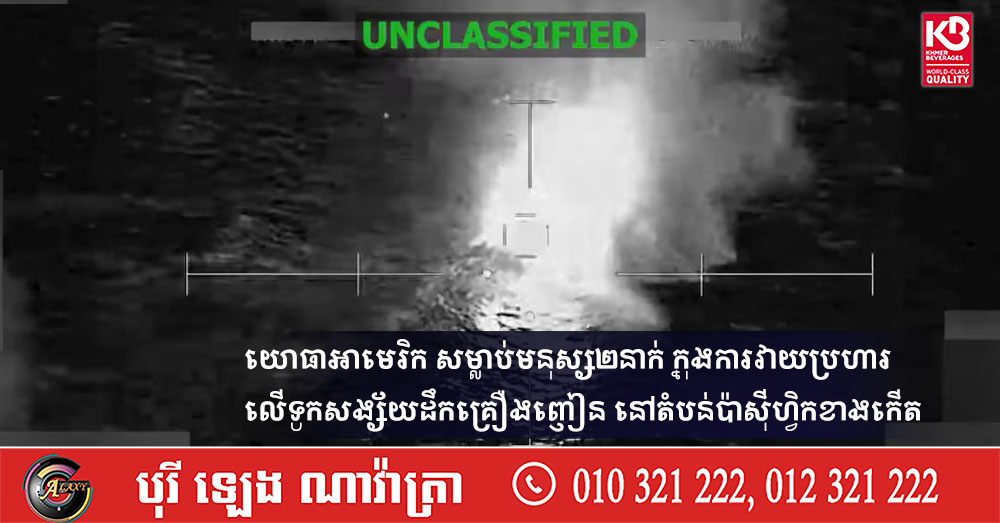 យោធាអាមេរិក សម្លាប់មនុស្ស២នាក់ ក្នុងការវាយប្រហារលើទូកសង្ស័យដឹកគ្រឿងញៀន នៅតំបន់ប៉ាស៊ីហ្វិកខាងកើត (Video inside)