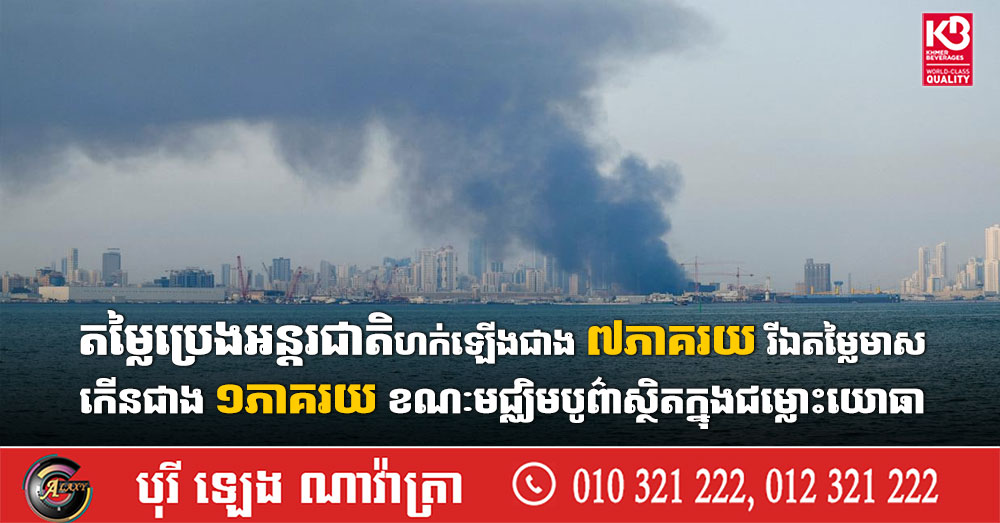 (មជ្ឈិមបូព៌ា)៖ តម្លៃប្រេងអន្តរជាតិ និងតម្លៃមាស នាថ្ងៃចន្ទ ទី២ ខែមីនា បានកើនឡើង ខណៈជម្លោះយោធានៅតំបន់មជ្ឈិមបូព៌ា ទំនងជាអូសបន្លាយពេលរាប់សប្តាហ៍ ដែលធ្វើឱ្យអ្នកវិនិយោគសម្រុកងាកទៅការធានាសុវត្ថិភាពពាក់ព័ន្ធនឹងប្រាក់ដុល្លារ ក៏ដូចជាមាស។ នេះបើយោងតាមការចេញផ្សាយដោយទីភ្នាក់ងារសារព័ត៌មាន Reuters។