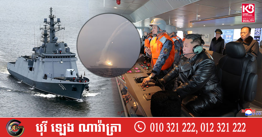 (សេអ៊ូល)៖ មេដឹកនាំកូរ៉េខាងជើង លោក គីម ជុងអ៊ុន នៅក្នុងសប្ដាហ៍នេះបានចុះត្រួតពិនិត្យការធ្វើតេស្ដនាវាពិឃាដ និងមីស៊ីល ជាមួយការអះអាងថាទីក្រុងព្យុងយ៉ាងកំពុងស្ថិតក្នុងដំណើរការបំពាក់ អាវុធនុយក្លេអ៊ែរឱ្យកងទ័ពជើងទឹក។ នេះបើតាមប្រព័ន្ធផ្សព្វផ្សាយរដ្ឋកូរ៉េខាងជើង ដកស្រង់ចេញផ្សាយដោយទីភ្នាក់ងារសារព័ត៌មាន AFP។
