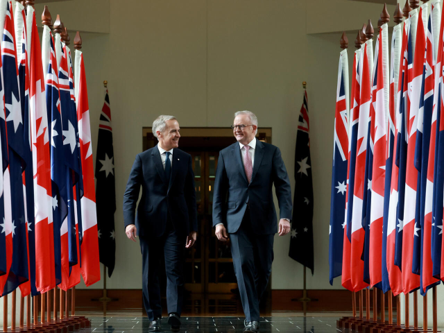 លោក Mark Carney ធ្វើការកត់សម្គាល់បែបនេះអំឡុងសន្និសីទសារព័ត៌មានរួមគ្នាជាមួយនាយករដ្ឋមន្ត្រីអូស្ត្រាលី លោក Anthony Albanese ក្នុងទីក្រុងកង់បេរ៉ា។ លោក Carney បានគូសបញ្ជាក់ដូច្នេះថា «គ្មាននរណាម្នាក់អាចបដិសេធការចូលរួមទាំងស្រុងបាននោះទេ។ យើងនឹងឈរនៅជាមួយសម្ព័ន្ធមិត្តរបស់យើង ប្រសិនបើវាជារឿងសមហេតុសមផល»។