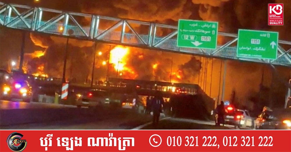(តេហេរ៉ង់)៖ ទីក្រុងតេហេរ៉ង់ បានធ្លាក់ក្នុងភាពអួរអាប់ដោយសារផ្សែងខ្មៅខ្មួលខ្មាញ់ និងអណ្តាតភ្លើងដ៏ធំ បន្ទាប់ពីការវាយប្រហារតាមអាកាសរួមគ្នារវាងសហរដ្ឋអាមេរិក និងអ៉ីស្រាអែល បានចំគោលដៅឃ្លាំងស្តុកប្រេងជាច្រើនកន្លែង។ នេះបើតាមការចេញផ្សាយដោយ ទីភ្នាក់ងារព័ត៌មាន AFP។