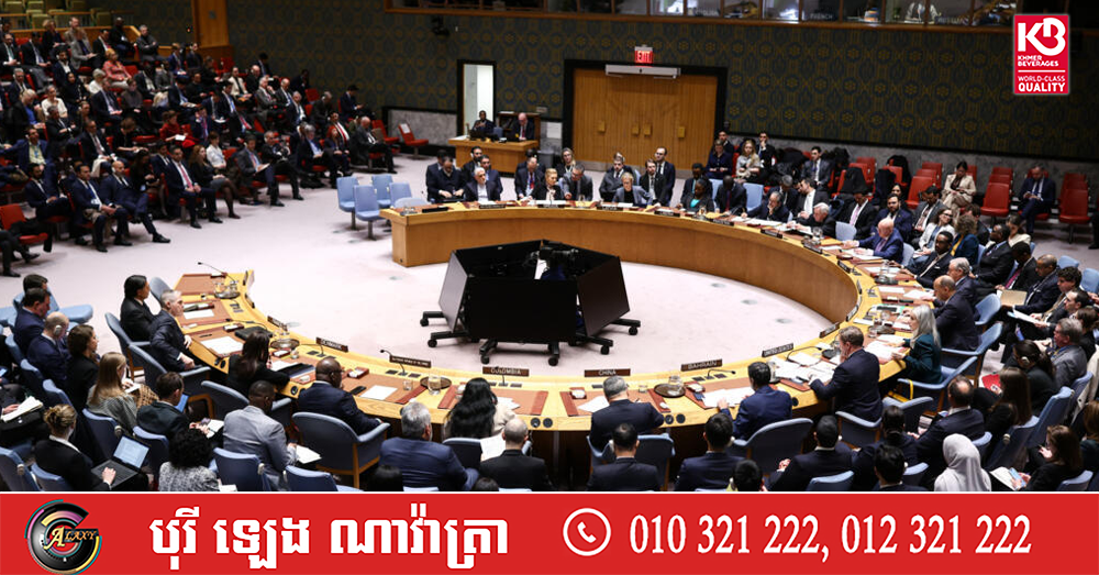(យូអិន)៖ ក្រុមប្រឹក្សាសន្តិសុខអង្គការសហប្រជាជាតិ កាលពីថ្ងៃពុធ ទី១១ ខែមីនា ឆ្នាំ២០២៦ បានទាមទារឱ្យអ៉ីរ៉ង់បញ្ឈប់ការវាយប្រហារលើក្រុមប្រទេសអារ៉ាប់ក្នុងតំបន់ ឈូងសមុទ្រពែក្ស នៅក្នុងដំណោះស្រាយមួយដែលមិនបានលើកឡើងការវាយប្រហាររបស់សហរដ្ឋអាមេរិក ឬអ៉ីស្រាអែលលើអ៉ីរ៉ង់នោះទេ ជាហេតុធ្វើឱ្យឯកអគ្គរដ្ឋទូតអ៉ីរ៉ង់ ថ្កោលទោសយ៉ាងខ្លាំង។ នេះបើតាមការចេញផ្សាយដោយទីភ្នាក់ងារសារព័ត៌មាន AFP។