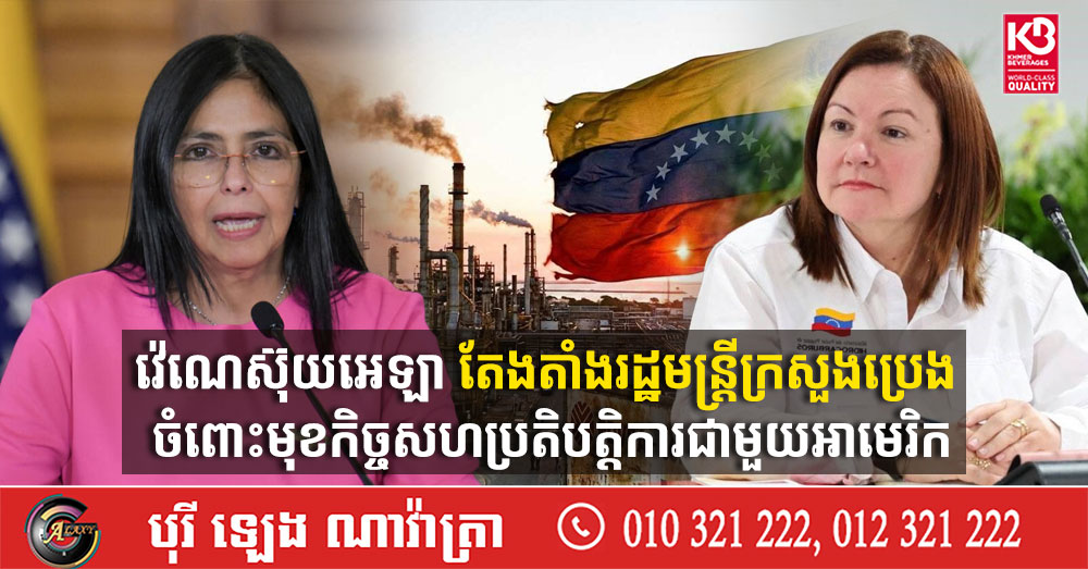 (ការ៉ាកាស)៖ ប្រធានាធិបតីបណ្តោះអាសន្នវ៉េណេស៊ុយអេឡា លោកស្រី Delcy Rodriguez បានតែងតាំងដំឡើងតំណែង លោកស្រី Paula Henao ឱ្យក្លាយរដ្ឋមន្រ្តីនៃក្រសួងប្រេងដែលមានតួនាទីសំខាន់ ខណៈប្រទេសនេះ កំពុងជួសជុលឧស្សាហកម្មប្រេងរបស់ខ្លួនឡើងវិញ ចំពេលមានសម្ពាធពីសហរដ្ឋអាមេរិក។ នេះបើយោងតាមការចេញផ្សាយដោយទីភ្នាក់ងារសារព័ត៌មាន Reuters នាថ្ងៃព្រហស្បតិ៍ ទី១២ ខែមីនា ឆ្នាំ ២០២៦។