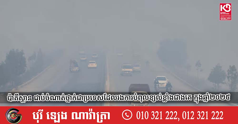 (អ៉ីស្លាម៉ាបាដ)៖ ទិន្នន័យស្រាវជ្រាវបានបង្ហាញនាថ្ងៃអង្គារនេះថា ប្រទេសប៉ាគីស្ថាន ត្រូវបានផ្តល់ចំណាត់ថ្នាក់ ជាប្រទេសដែលមានខ្យល់ពុលអាក្រក់ជាងគេបង្អស់នៅលើពិភពលោក កាលពីឆ្នាំ២០២៥ ដោយមានកំហាប់ធូលីល្អិតដ៏គ្រោះថ្នាក់ចំពោះសុខភាព ហៅថា PM2.5 លើសកម្រិតដែលណែនាំដោយអង្គការសុខភាពពិភពលោក WHO ដល់ទៅ១៣ដង។ នេះបើតាមការចេញផ្សាយដោយ ទីភ្នាក់ងារព័ត៌មាន Reuters នាថ្ងៃអង្គារ ទី២៤ ខែមីនា ឆ្នាំ២០២៦។