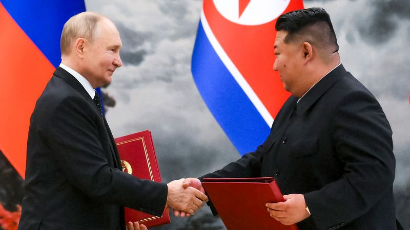 គួរបញ្ជាក់ថា ទំនាក់ទំនងរវាងប្រទេសទាំងពីរ មានភាពជិតស្និទ្ធខ្លាំងឡើង ចាប់តាំងពីសង្រ្គាមនៅអ៊ុយក្រែន ដោយទីក្រុងព្យុងយ៉ាង បានបញ្ជូនកងទ័ពនិងសព្វាវុធ ទៅជួយរុស្ស៉ី។ បើតាមចារកម្មកូរ៉េខាងត្បូង កូរ៉េខាងជើងបានបញ្ជូនទាហានប្រហែលជាង ២ម៉ឺននាក់ទៅរុស្ស៉ី គិតចាប់តាំងពីខែតុលា ឆ្នាំ២០២៤ ហើយយ៉ាងហោចប្រហែល២០០០នាក់បានស្លាប់ និងរាប់ពាន់នាក់ផ្សេងទៀតរងរបួស ក្នុងសង្រ្គាមប្រឆាំងអ៊ុយក្រែន។ កាលពីខែមិថុនា ឆ្នាំ២០២៤ លោក គីម និងប្រធានាធិបតីរុស្ស៉ី លោក វ៉្លាឌីមៀ ពូទីន បានចុះសន្ធិសញ្ញា ដែលតម្រូវឱ្យរដ្ឋទាំងពីរផ្តល់ជំនួយយោធាភ្លាមៗជួយគ្នា ក្នុងករណីភាគីណាមួយ រងការវាយប្រហារ៕