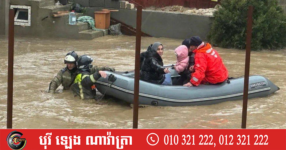 (Dagestan)៖ អាជ្ញាធរនៅក្នុងទីក្រុងនៃតំបន់ Dagestan ភាគខាងត្បូងនៃប្រទេសរុស្ស៉ី បានប្រកាសភាពអាសន្ន នៅថ្ងៃសៅរ៍ ទី២៨ ខែមីនា បន្ទាប់ពីភ្លៀងធ្លាក់ខ្លាំងនាំឱ្យមានទឹកជំនន់រីករាលដាល និងកាត់ផ្តាច់ចរន្តអគ្គិសនី។ នេះបេីយោងតាមការចេញផ្សាយដោយទីភ្នាក់ងារសារព័ត៌មាន Reuters។