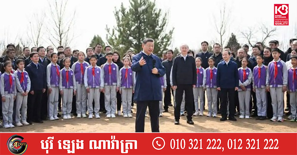 (ប៉េកាំង)៖ នាព្រឹកថ្ងៃទី៣០ ខែមីនា លោកXi Jinping អគ្គលេខាធិការ នៃគណៈកម្មាធិការមជ្ឈិមបក្សកុម្មុយនីស្តចិន ប្រធានរដ្ឋចិននិងជាប្រធានគណៈកម្មាធិការយោធាមជ្ឈិមចិនបានថ្លែងក្នុងឱកាសអញ្ជើញចូលរួមសកម្មភាពដាំដើមឈើដោយស្ម័គ្រចិត្ត នៅទីក្រុងប៉េកាំងថា ប្រព័ន្ធអេកូឡូស៊ីល្អអាចចែករំលែកជាមួយមនុស្សគ្រប់រូប ហើយក៏ទាមទារឱ្យមានការខិតខំប្រឹងប្រែងរួមគ្នា ដើម្បីកសាងប្រព័ន្ធអេកូឡូស៊ីល្អផងដែរ។ យើងត្រូវតែរៀបចំ និងអំពាវនាវសង្គមទាំងអស់ឱ្យចូលរួមការដាំដើមឈើ ដើម្បីបន្ថែមភាពត្រចះត្រចង់ដល់ភ្នំនិងទឹក និងភាពលេចធ្លោនៃការធ្វើទំនើបកម្មតាមបែបផែនចិន។