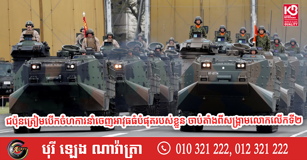 (តូក្យូ)៖ ផែនការបន្ធូរបន្ថយច្បាប់នាំចេញអាវុធរបស់ប្រទេសជប៉ុន ដែលត្រៀមនឹងចូលជាធរមានក្នុងខែនេះ កំពុងទាក់ទាញចំណាប់អារម្មណ៍យ៉ាងខ្លាំងពីសំណាក់បណ្តាប្រទេសនានា។ ការផ្លាស់ប្តូរនេះធ្វើឡើងស្របពេលដែលប្រធានាធិបតីអាមេរិក លោក ដូណាល់ ត្រាំ កំពុងមានភាពមិនច្បាស់លាស់ជុំវិញការប្តេជ្ញាចិត្តផ្នែកសន្តិសុខចំពោះសម្ព័ន្ធមិត្ត ហើយការផ្គត់ផ្គង់អាវុធរបស់អាមេរិកក៏កំពុងរងសម្ពាធយ៉ាងខ្លាំងដោយសារសង្គ្រាមនៅអ៊ីរ៉ង់ និងអ៊ុយក្រែនផងដែរ។ នេះបើតាមការចេញផ្សាយដោយទីភ្នាក់ងារសារព័ត៌មាន Reuters។